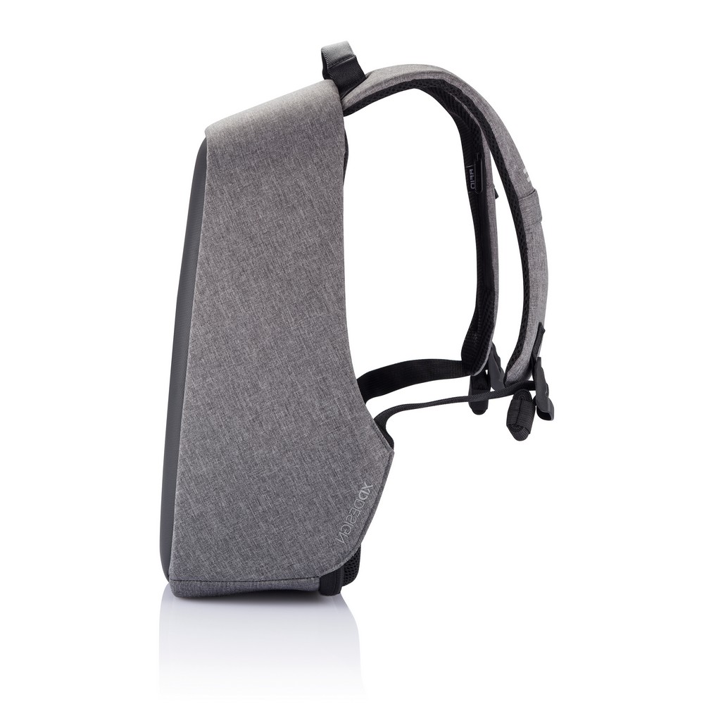 Plecak chroniący przed kieszonkowcami Bobby Hero Small, wodoodporny i odporny na przecięcia materiał, wykonany z przyjaznego środowisku materiału RPET, ukryte zamki i kieszenie, wewnątrz miękkie przegrody na laptopa do 13,3" i tablet do 12,9", zintegrowany port USB do ładowania telefonów (power-bank nie jest dołączony), odblaskowe paski zwiększające widoczność, pasek do zamocowania na walizce, wzór zastrzeżony®, ślad węglowy produktu: 6,28 kg CO2