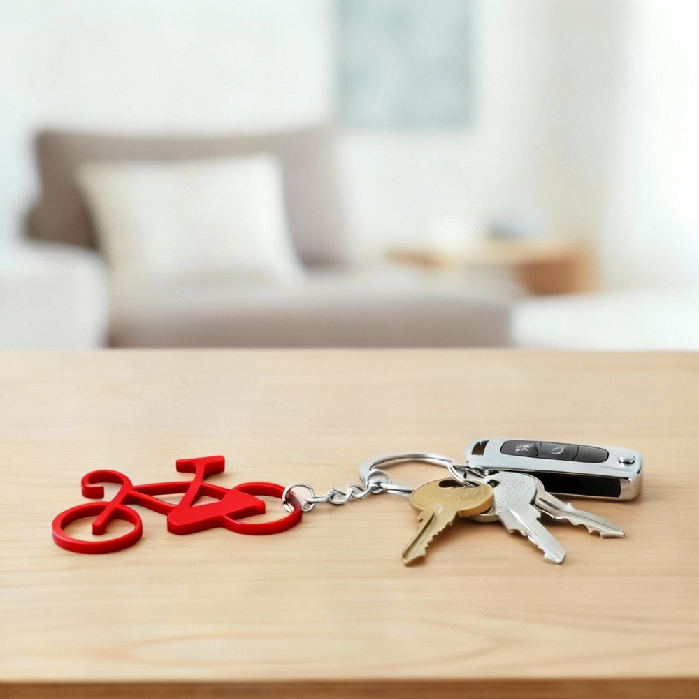 Brelok do kluczy „rower”, drobny upominek dla fanów aktywnego stylu życia, produkt wykonany z aluminium