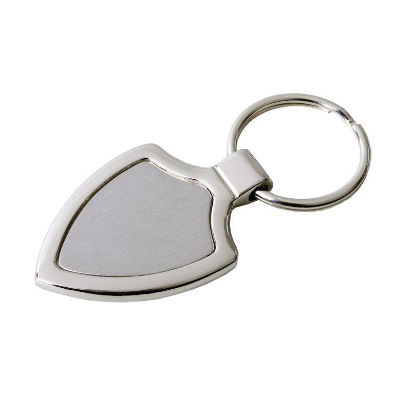 Metalowy brelok stworzony z myślą o umieszczeniu na nim herbu lub godła. Pakowany w czarne opakowanie upominkowe.
