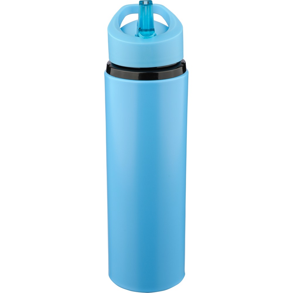 Butelka sportowa 500 ml, z uchwytem ułatwiającym przenoszenie, pojedyncza ścianka, składany ustnik ze słomką, ikona recyklingu na produkcie, zapakowana pojedynczo w brązowe kartonowe pudełko, produkt wykonany ze stali nierdzewnej 304 z recyklingu