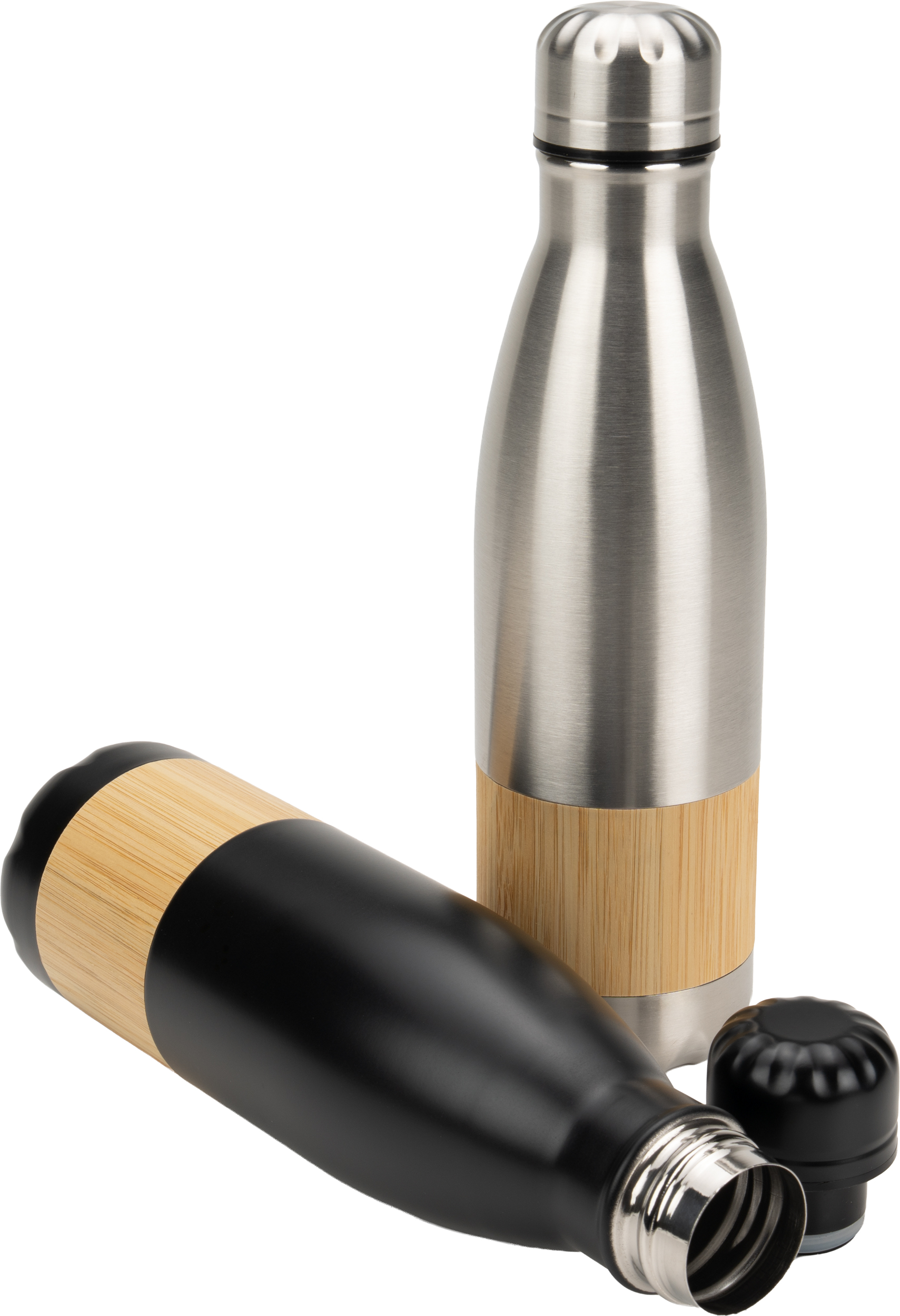 Butelka wykonana ze stali nierdzewnej z bambusowym elementem. Butelka posiada szczelne zamknięcie, dzięki czemu nie przecieka. Pojemność butelki to 750 ml.