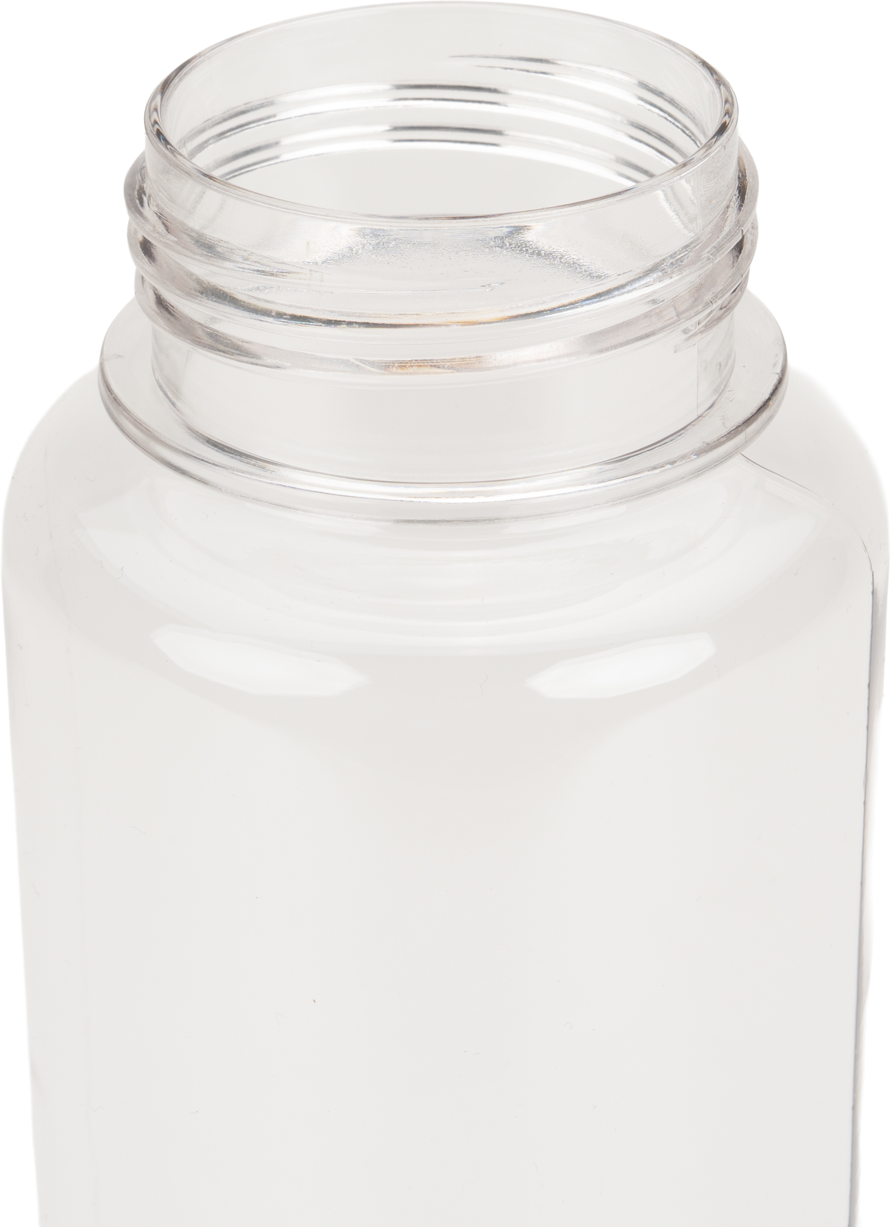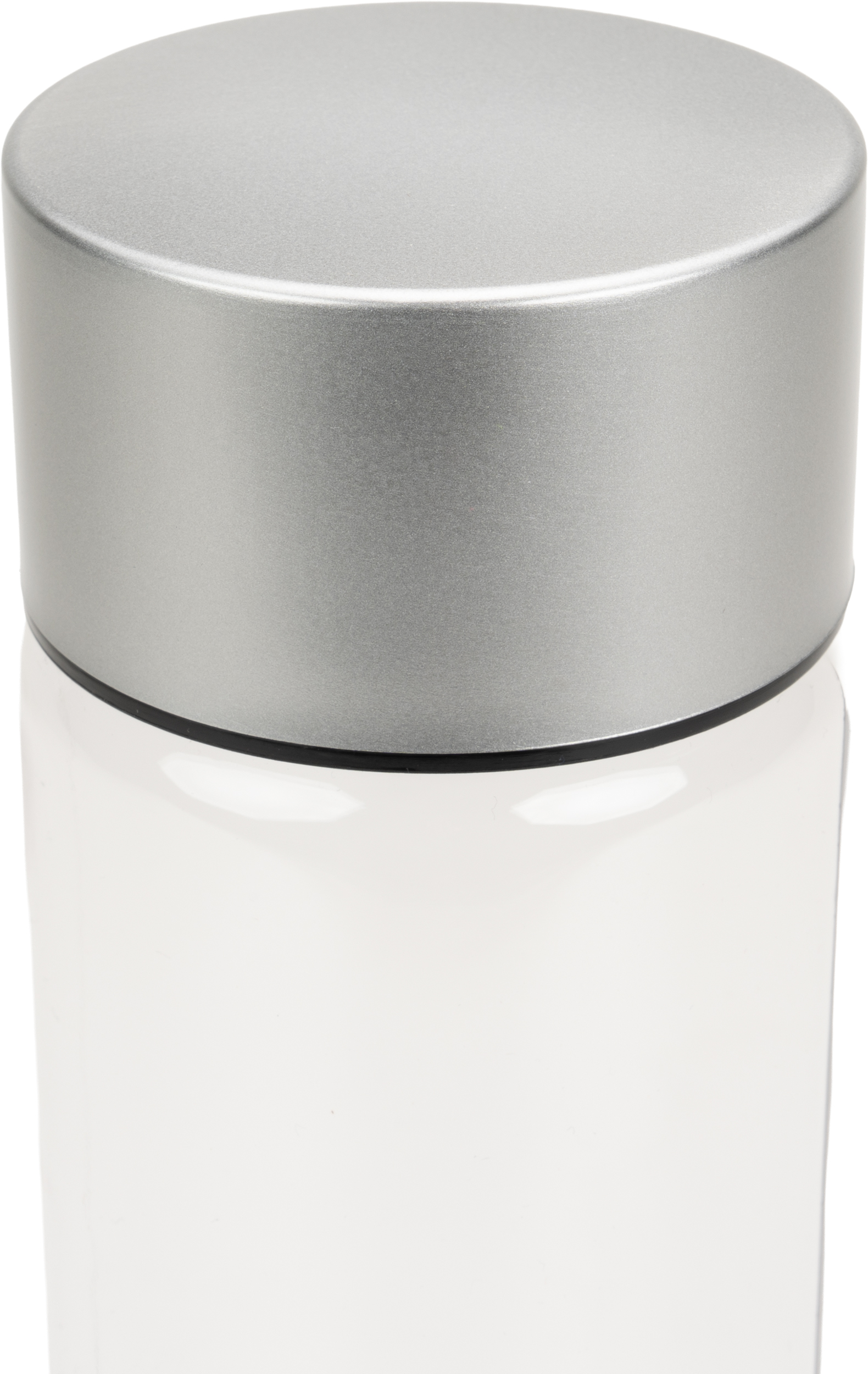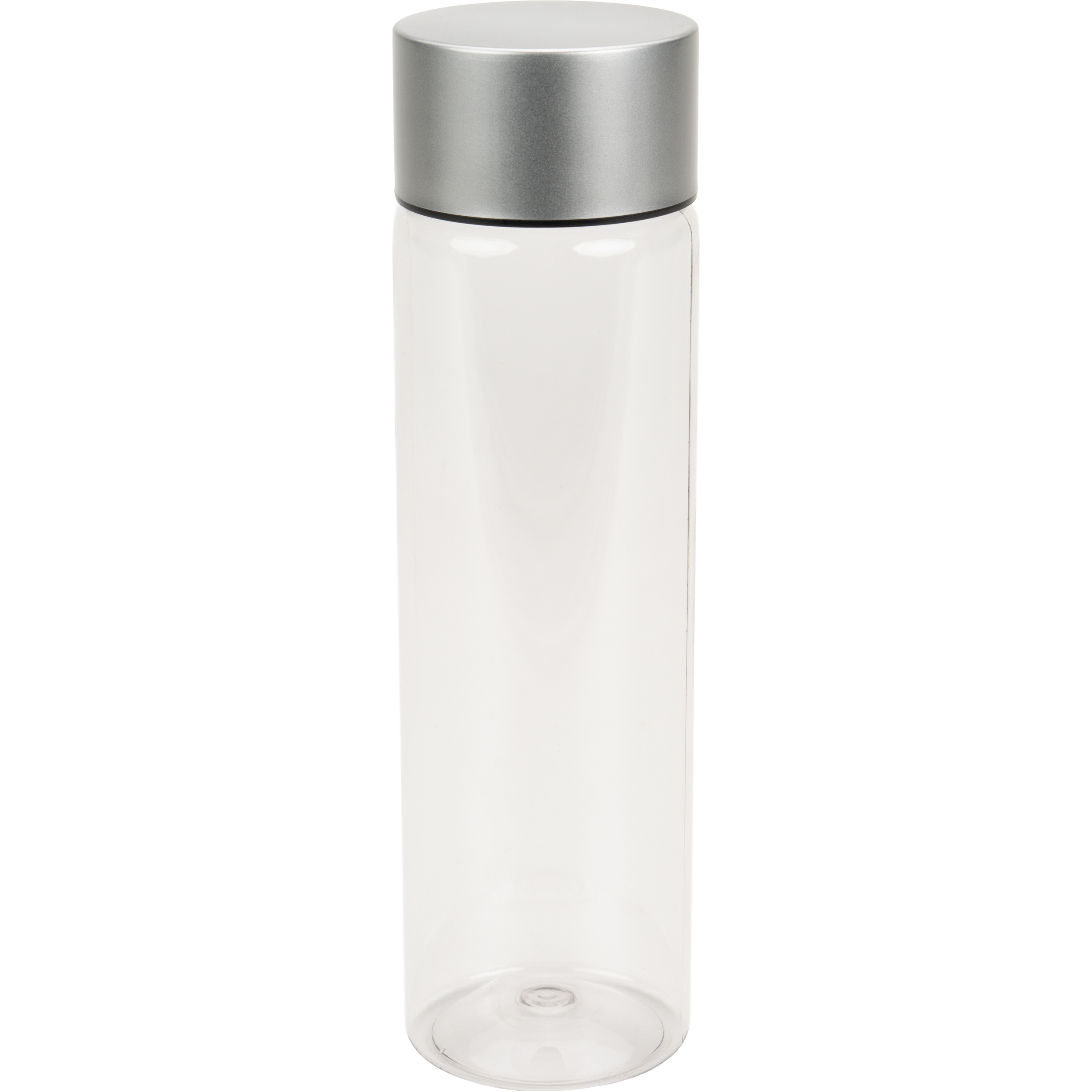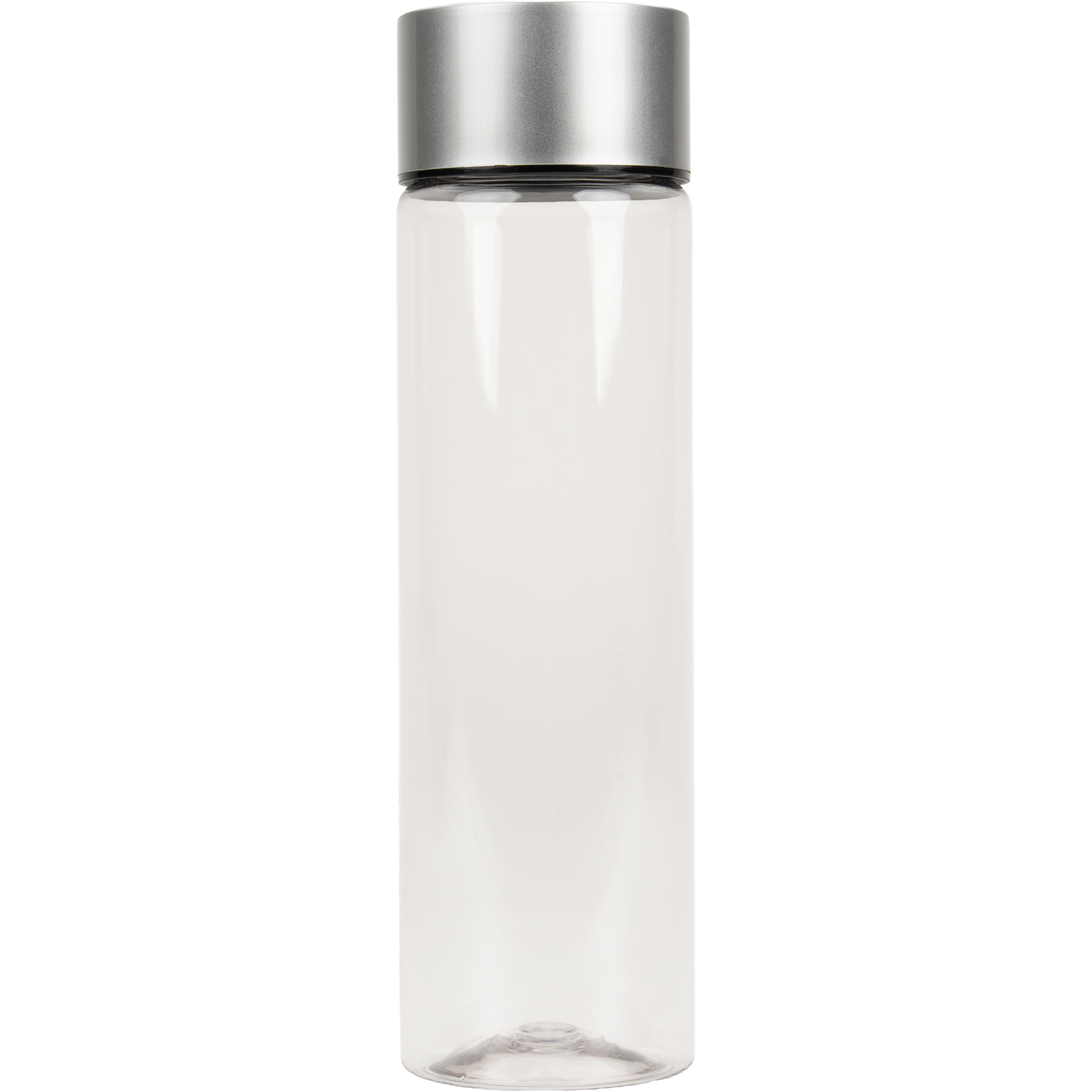 Transparentna butelka wykonana z tritanu o pojemności 900 ml z aluminiowymi elementami.
