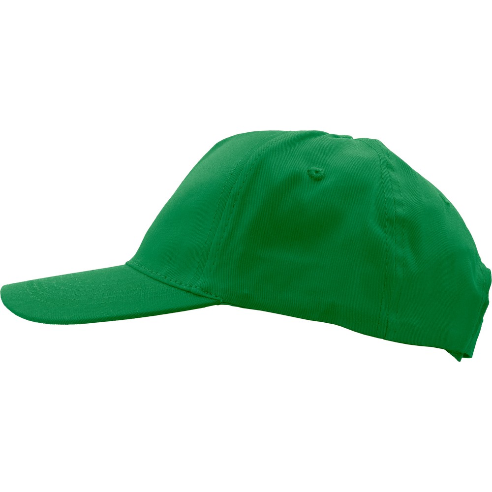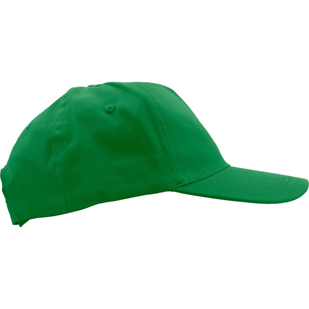 Czapka z daszkiem, posiada 5 paneli oraz zapięcie na rzep umożliwiający regulację rozmiaru, produkt wykonany z bawełny 155 g/m²