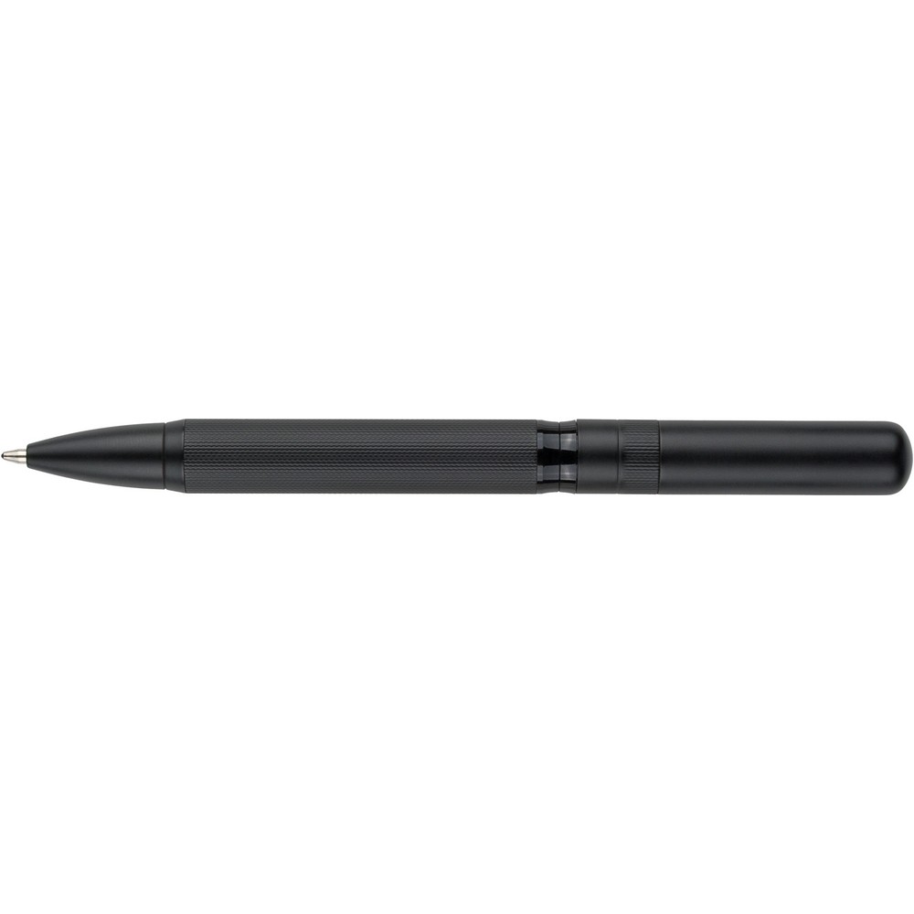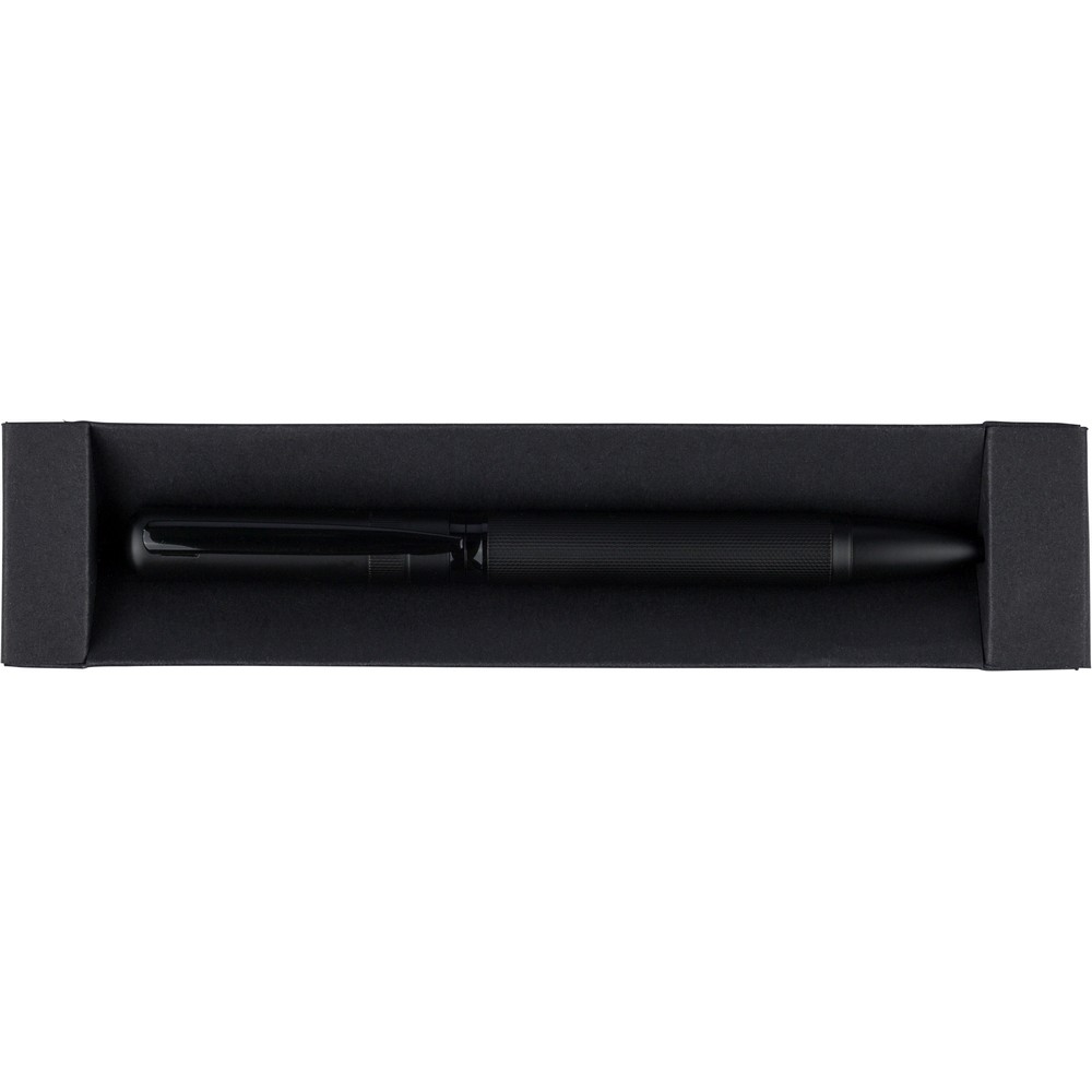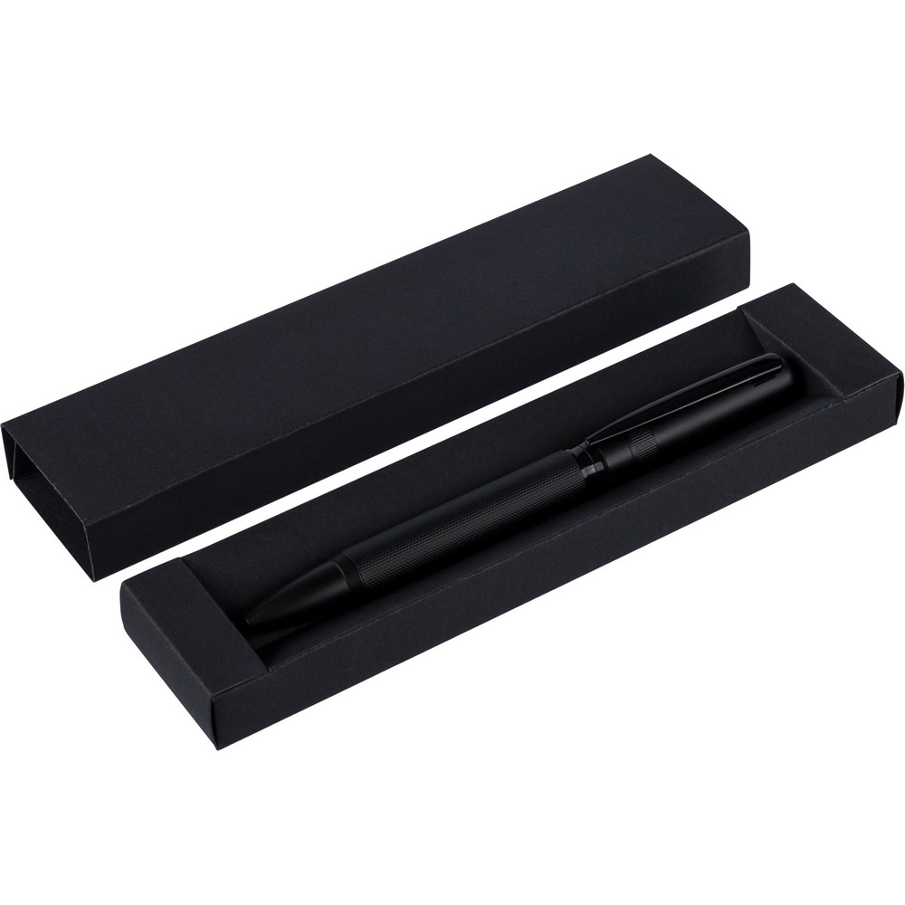 Długopis przekręcany, wkład w niebieskim kolorze, wystarcza na ok. 1000 m pisania, zapakowany pojedynczo w czarny kartonik, produkt wykonany z metalu