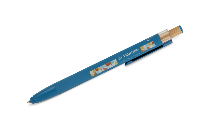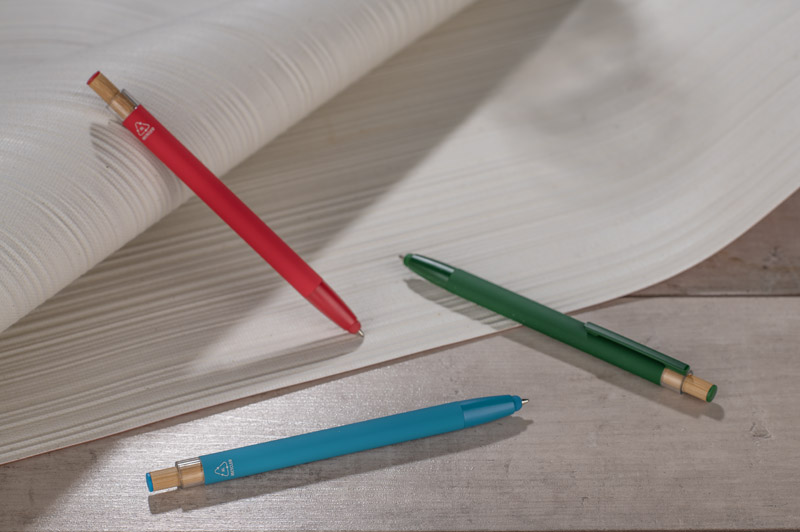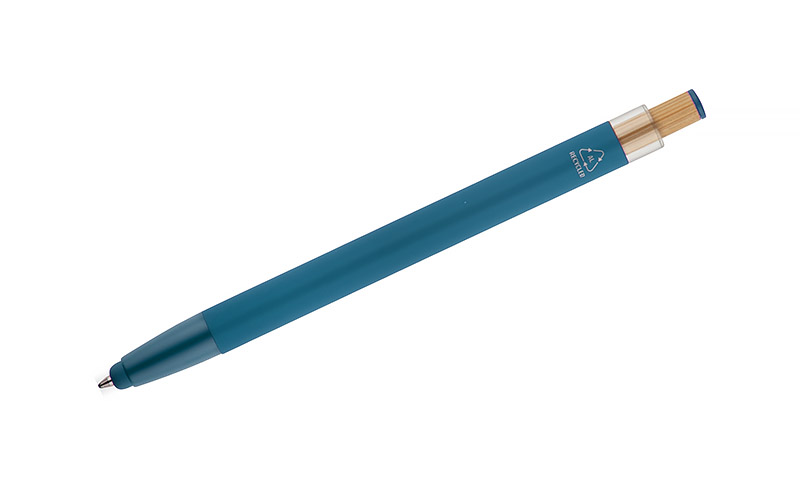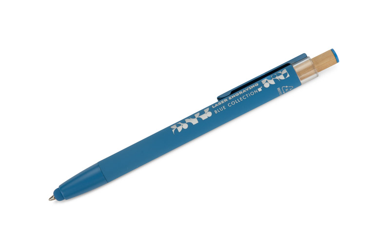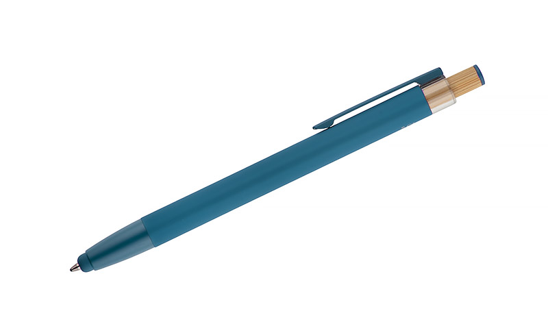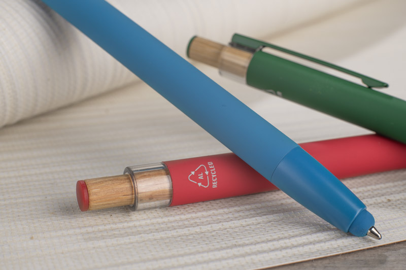 Długopis ALPEN to połączenie nowoczesnego designu i wygody pisania. Wykonany z recyklingowanego aluminium z miękkim w dotyku, gumowanym wykończeniem typu soft touch, zapewnia komfortowe użytkowanie każdego dnia. Wyposażony jest w funkcję touch pena do obsługi ekranów dotykowych oraz metalowy klip, który ułatwia przypięcie do notesu lub kieszeni. Charakterystyczny guzik z bambusa dodaje całości naturalnego akcentu, a kolorowe detale podkreślają jego nowoczesny styl. Wkład typu G2 o grubości linii 1,0 mm gwarantuje płynne pisanie i wysoką trwałość.
