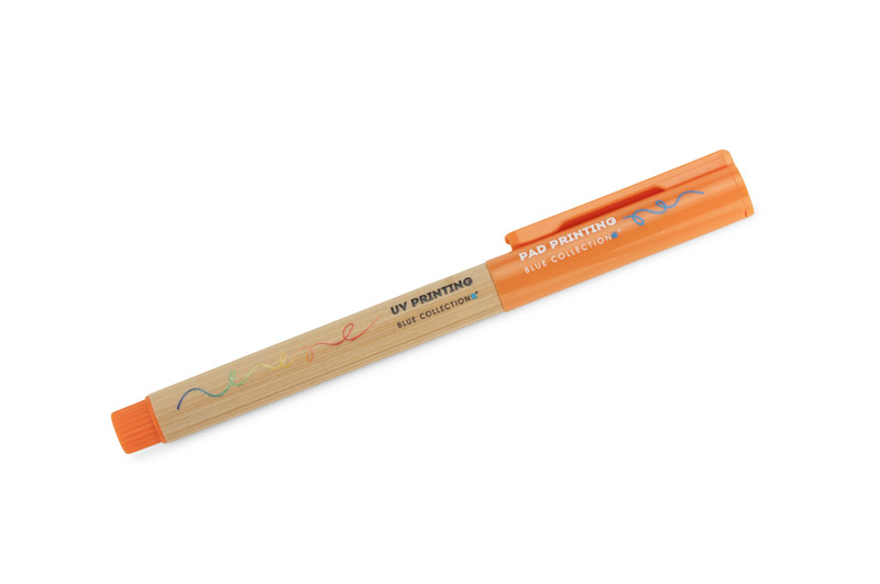 Długopis TUFI to połączenie naturalnego bambusa i tworzywa, które nadaje mu lekki i nowoczesny wygląd. Wyposażony w żelowy wkład o grubości pisania 0,5 mm, zapewnia płynny i precyzyjny zapis. Zatyczka chroni końcówkę przed wysychaniem, a gładka powierzchnia korpusu sprawia, że długopis dobrze leży w dłoni. TUFI to prosty, a jednocześnie stylowy gadżet reklamowy do codziennego użytku.