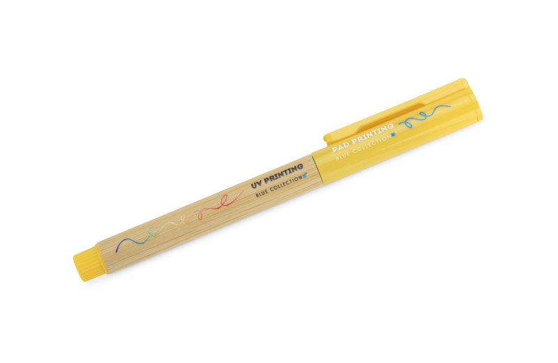 Długopis TUFI to połączenie naturalnego bambusa i tworzywa, które nadaje mu lekki i nowoczesny wygląd. Wyposażony w żelowy wkład o grubości pisania 0,5 mm, zapewnia płynny i precyzyjny zapis. Zatyczka chroni końcówkę przed wysychaniem, a gładka powierzchnia korpusu sprawia, że długopis dobrze leży w dłoni. TUFI to prosty, a jednocześnie stylowy gadżet reklamowy do codziennego użytku.