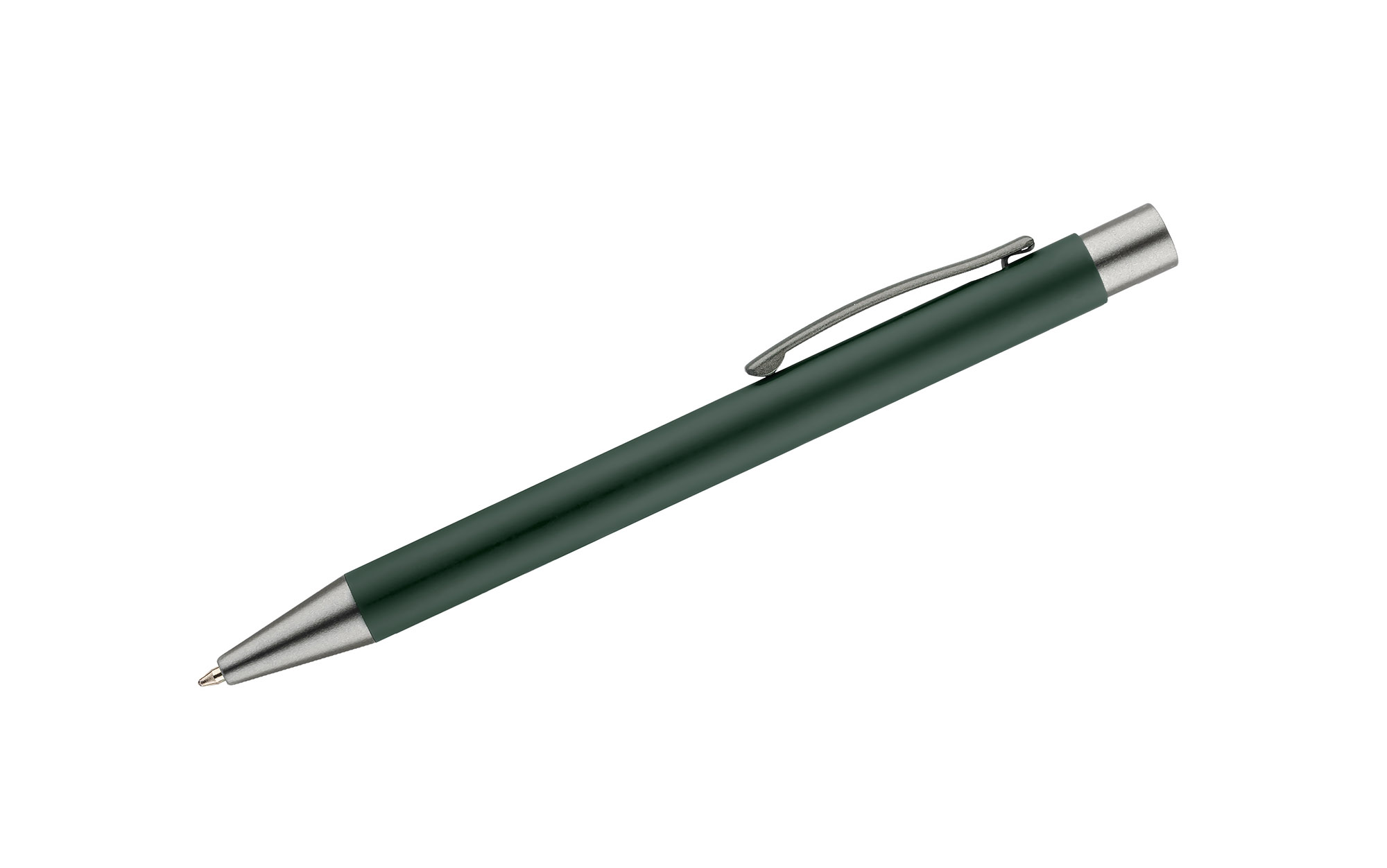 Długopis GOMA to prosty design połączony z przyjemną w dotyku gumowaną powierzchnią. Całość jest utrzymana w lekkich, matowych barwach. Wykonany z aluminium. Wykończenia w kolorze grafitowym. Wkład w kolorze czarnym.