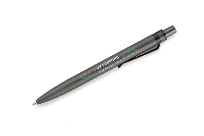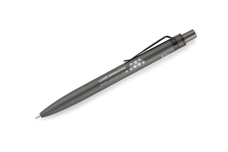 Długopis RAL wykonany jest z recyklingowanego aluminium w eleganckim, grafitowym kolorze z chromowanym wykończeniem. Aluminiowy klips zakończony kolorowym akcentem nadaje mu nowoczesny i rozpoznawalny wygląd. Mechanizm wysuwu jest automatyczny, co zapewnia wygodę i szybkie użycie w każdej sytuacji. Smukła forma oraz przyjemny w dotyku korpus gwarantują komfort pisania. Wkład typu G2 o grubości linii 1,0 mm zapewnia płynny i precyzyjny zapis. To praktyczny gadżet reklamowy, który świetnie sprawdzi się w biurze i podczas spotkań biznesowych.
