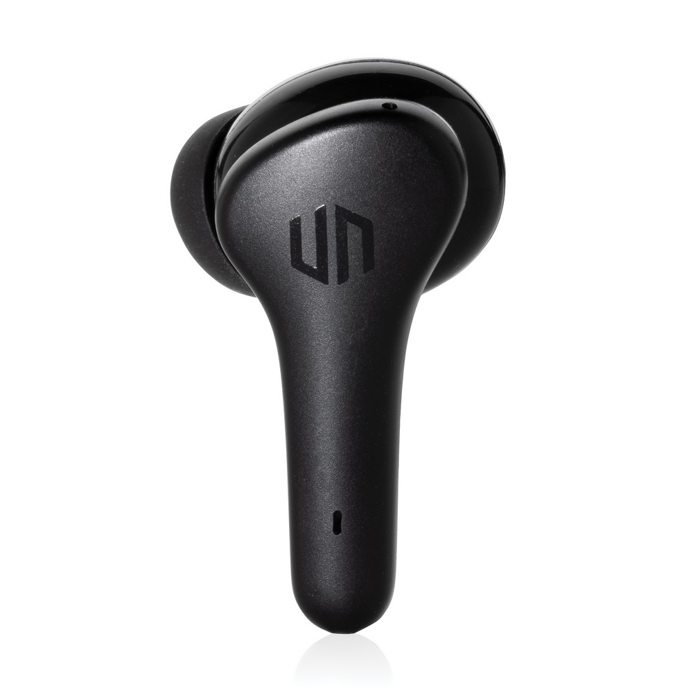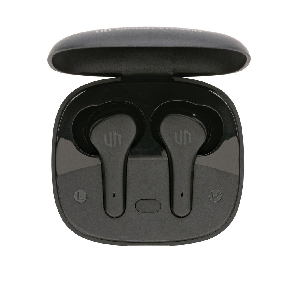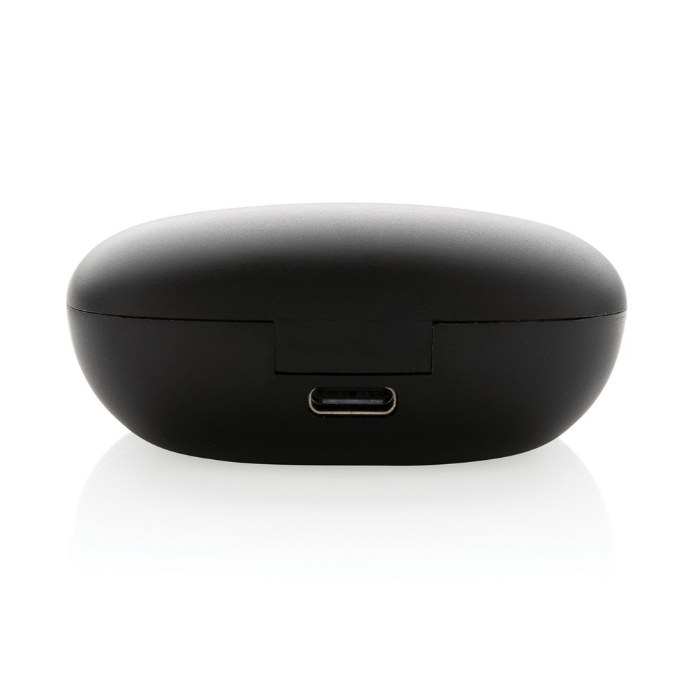 Bezprzewodowe słuchawki douszne z systemem redukcji szumów z otoczenia (ENC), który doskonale sprawdza się podczas rozmów telefonicznych, słuchawki wyposażone są w tryb niskiego opóźnienia (65 ms), dzięki któremu opóźnienie pomiędzy ekranem a dźwiękiem jest minimalizowane, wodoodporne IPX4 (całkowita ochrona przed spryskiwaniem i zachlapaniem wodą z różnych kierunków z natężeniem do 10 litrów na minutę), dotykowy panel sterowania, wbudowany mikrofon, funkcja odbierania połączeń, do 5 godzin odtwarzania na jednym ładowaniu, etui ładujące zapewnia 20 godzin odtwarzania, nie zawiera PVC, opakowanie nie zawiera plastiku, ślad węglowy produktu: 0,93 kg CO2