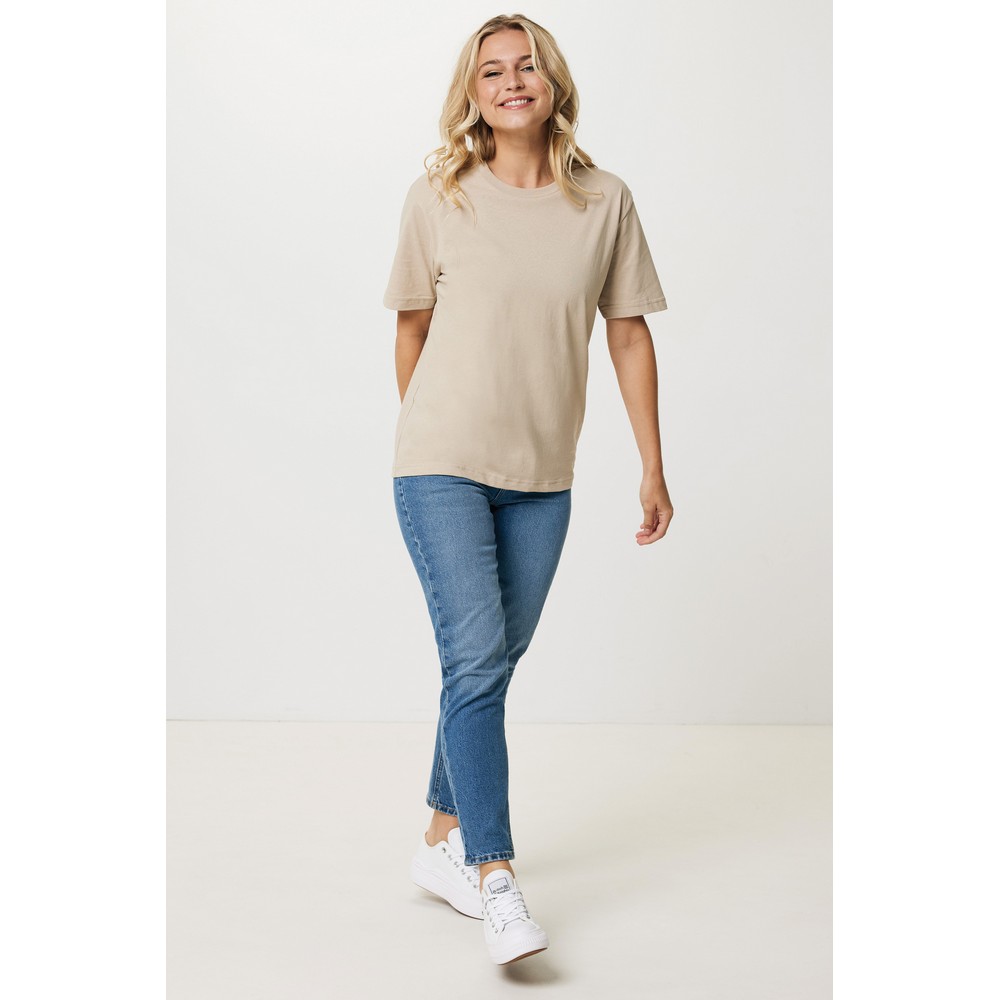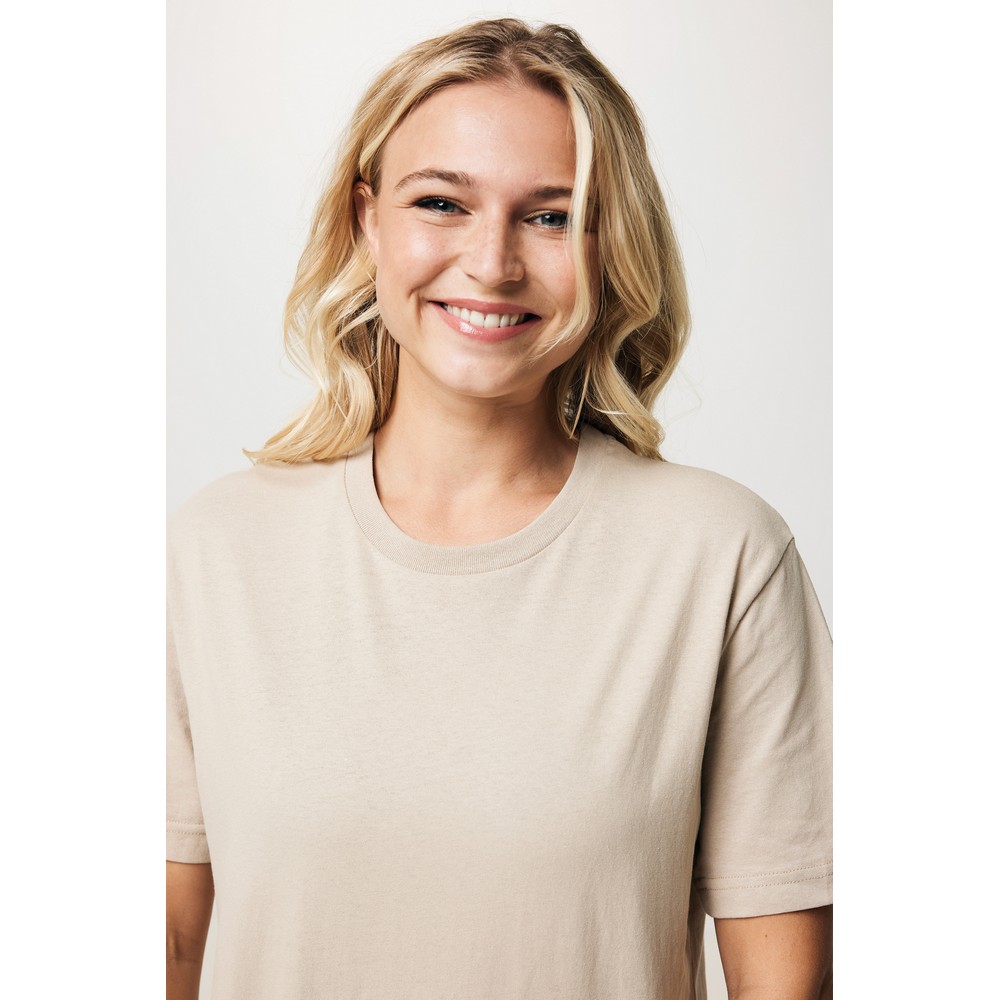 Koszulka, unisex, regularny krój, okrągły dekolt, krótkie rękawy, wykonana w 50% z bawełny z recyklingu i w 50% z bawełny organicznej o gramaturze 180 g/m2, bez dodatku poliestru, posiada wbudowany znacznik AWARE™, który potwierdza wykorzystanie materiałów z recyklingu, posiada kod QR na metce, który prowadzi do cyfrowego paszportu produktu, 2% wpływów z każdego sprzedanego produktu z kolekcji Impact jest przekazywane na rzecz Water.org