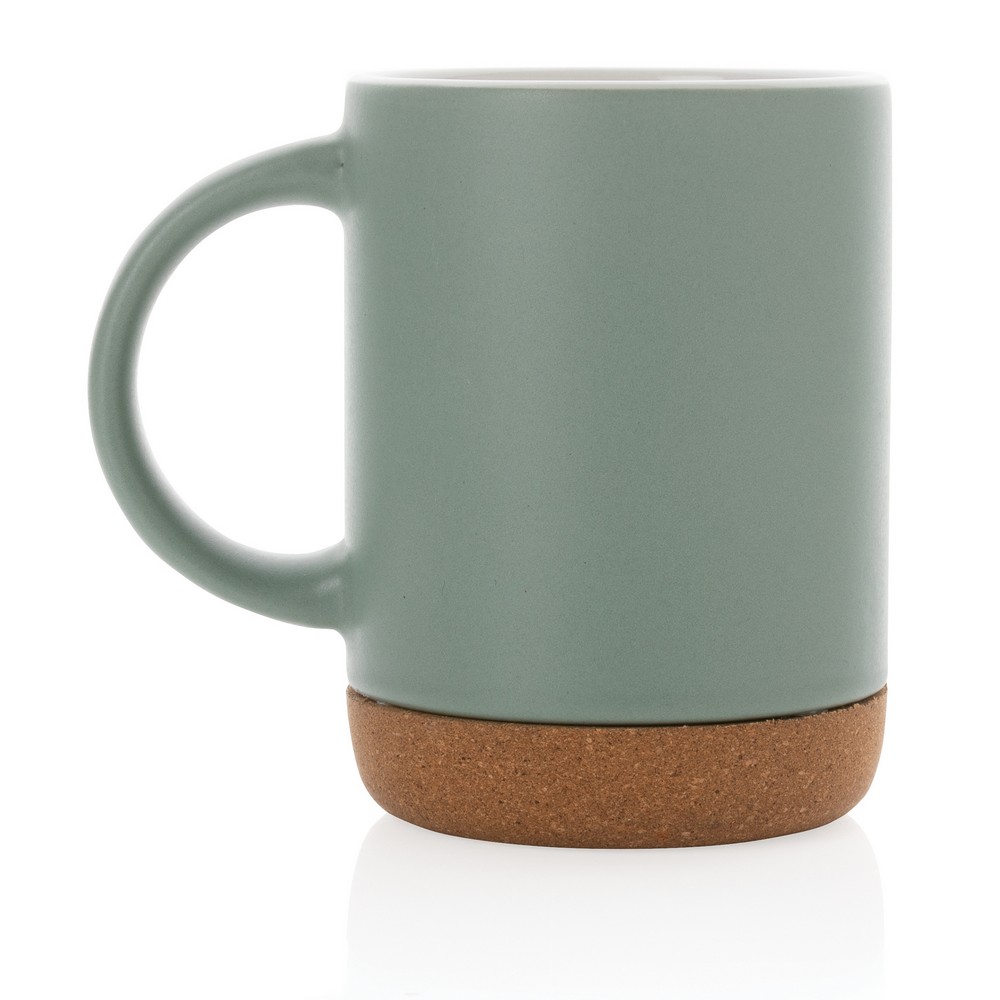 Kubek ceramiczny 280 ml, korkowa podstawa, nie należy używać w kuchence mikrofalowej, zalecane mycie ręczne, ślad węglowy produktu: 1,39 kg CO2