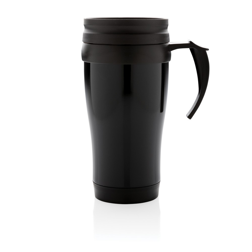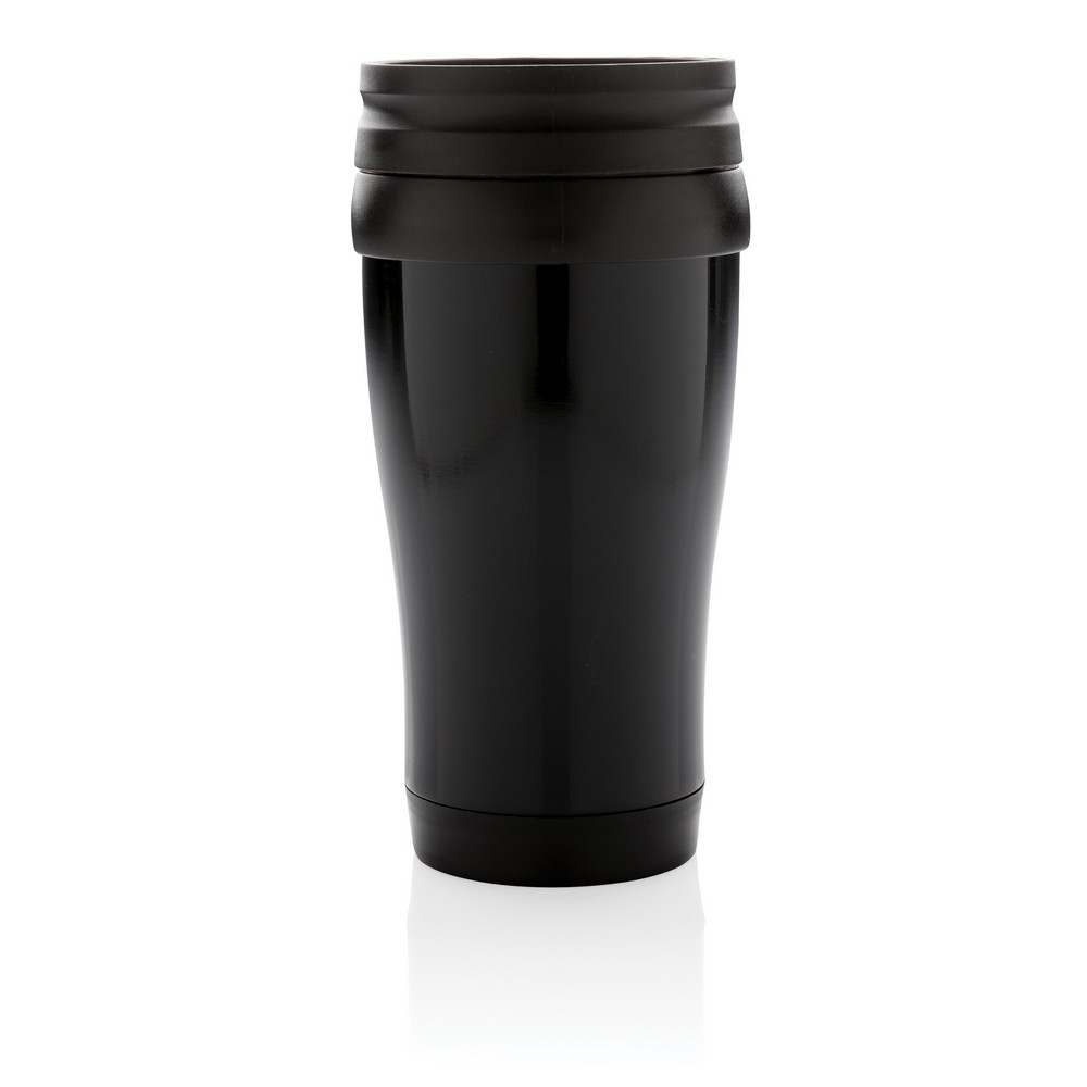 Kubek termiczny 350 ml, stal nierdzewna na zewnątrz, wnętrze z PP, czarny spód i wieczko, klasa termiczna: 1