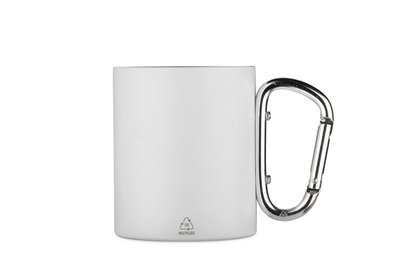 Kubek VIVO o pojemności 250 ml został wykonany z recyklingowanej stali nierdzewnej, a jego uchwyt w formie karabińczyka – z recyklingowanego aluminium. Matowe wykończenie nadaje mu nowoczesny wygląd, a karabińczyk umożliwia łatwe przypięcie kubka do plecaka lub torby. Praktyczny w podróży, podczas biwaku czy spaceru, stanowi atrakcyjny gadżet promocyjny i doskonały wybór dla osób ceniących świadome rozwiązania.