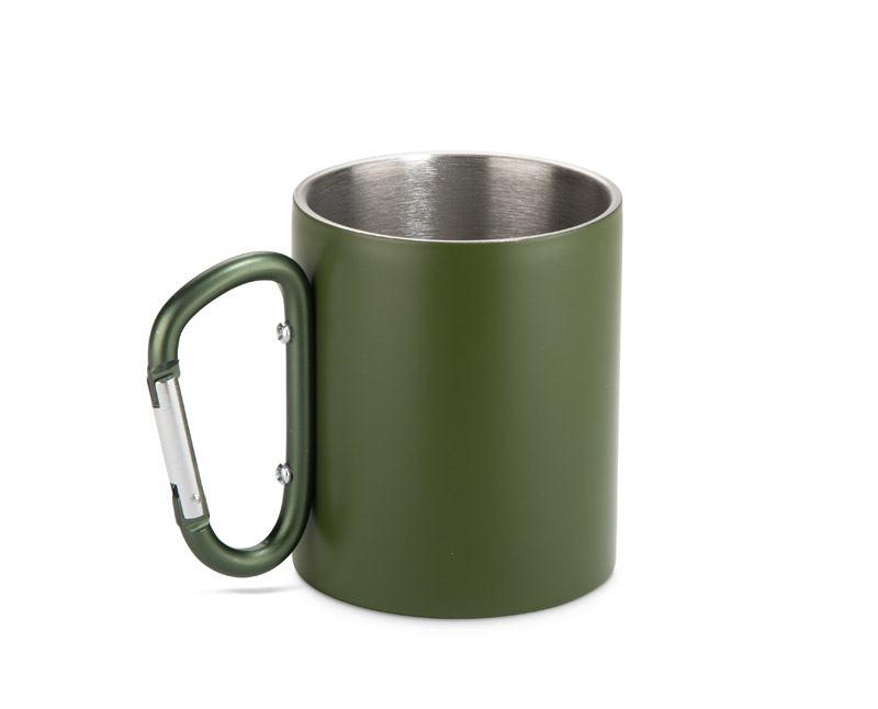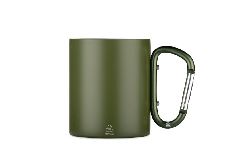Kubek VIVO o pojemności 250 ml został wykonany z recyklingowanej stali nierdzewnej, a jego uchwyt w formie karabińczyka – z recyklingowanego aluminium. Matowe wykończenie nadaje mu nowoczesny wygląd, a karabińczyk umożliwia łatwe przypięcie kubka do plecaka lub torby. Praktyczny w podróży, podczas biwaku czy spaceru, stanowi atrakcyjny gadżet promocyjny i doskonały wybór dla osób ceniących świadome rozwiązania.