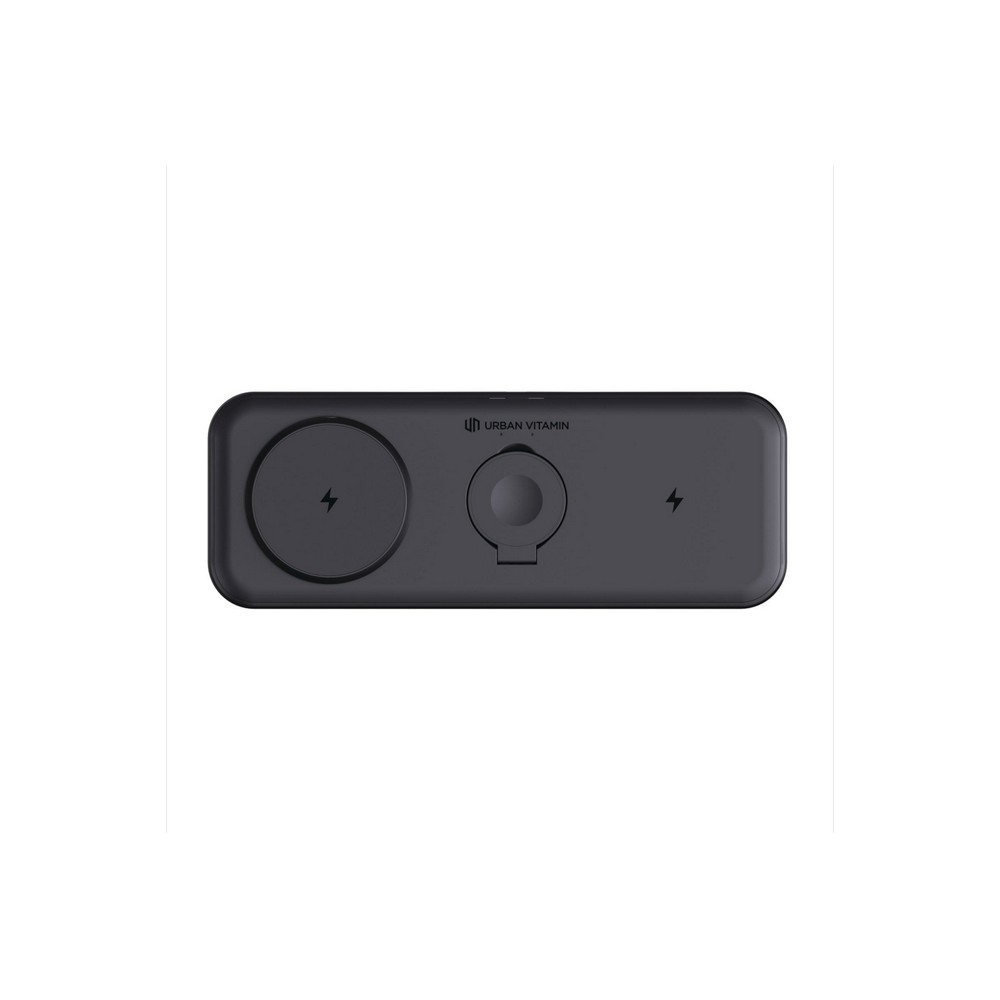 Ładowarka bezprzewodowa 3 w 1, ładowarka bezprzewodowa do telefonu 15W, ładowarka bezprzewodowa 5W do słuchawek i innej drobnej elektroniki, ładowarka bezprzewodowa do smartwatcha (działa tylko z urządzeniami iOS), składana konstrukcja, działa z telefonami posiadającymi możliwość ładowania indukcyjnego, wykonana z ABS z recyklingu z certyfikatem RCS, całkowita zawartość materiałów z recyklingu obliczona w oparciu o wagę całkowitą przedmiotu: 37%, kabel z TPE z recyklingu w komplecie