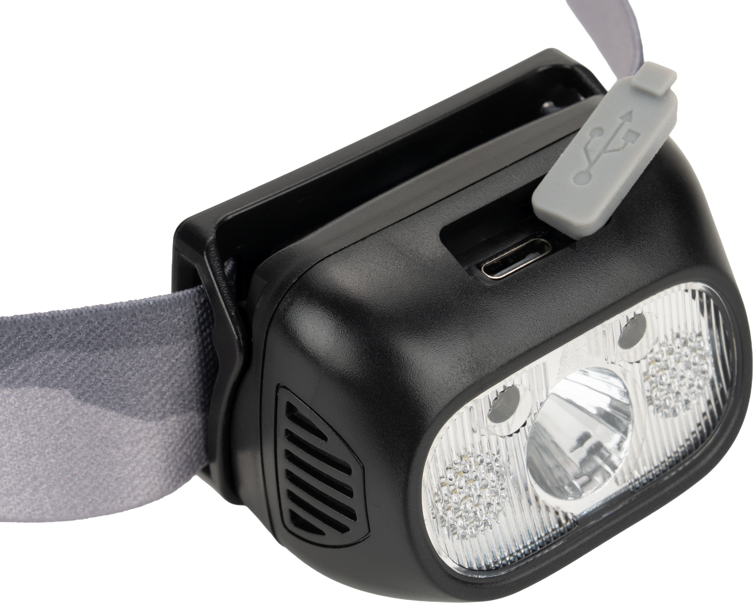Latarka na głowę wyposażona w 5 diod LED, posiada 3 tryby świecenia - mocny, słaby, czerwone światło. W pełni naładowana latarka działa 6-12h. Moc: 250 lumenów. W zestawie kabelek do ładowania z końcówką typu C. Wymiary lampki - 6 x 4,2 x 4 cm, pasek - 62 x 2,5 cm.