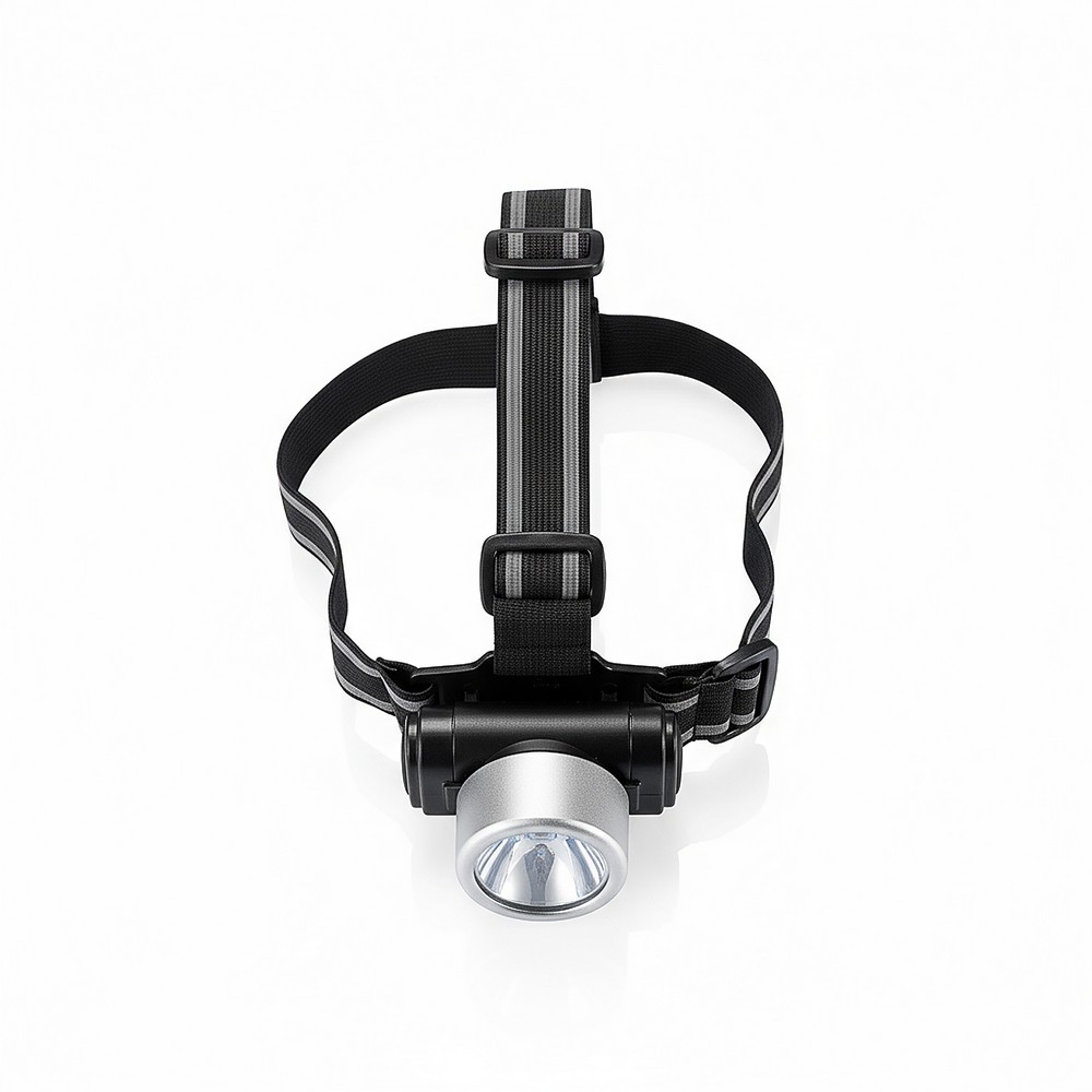 Latarka na głowę, 3 diody LED + 1 żarówka kryptonowa, 2 tryby świecenia (światło białe i żółte), regulowany pasek mocujący, ślad węglowy produktu: 1,16 kg CO2