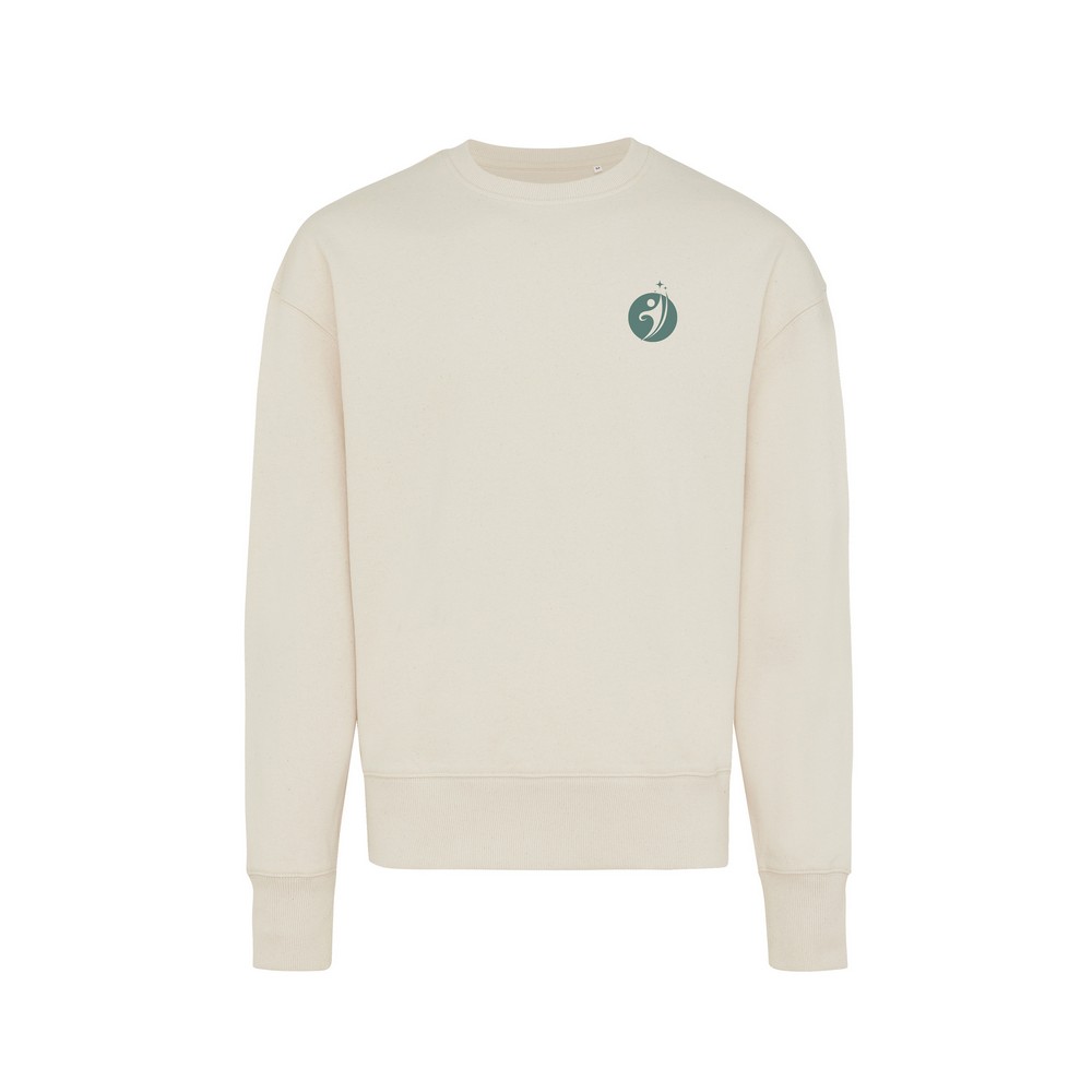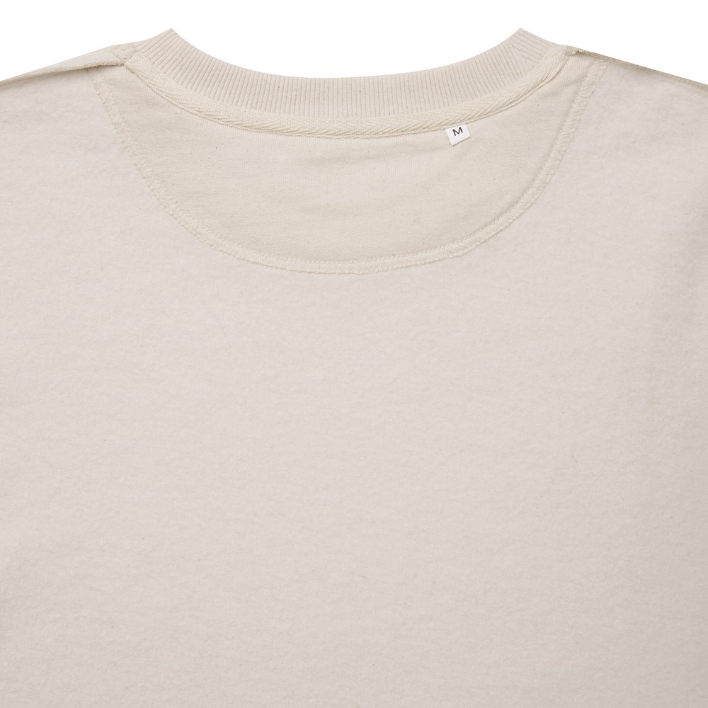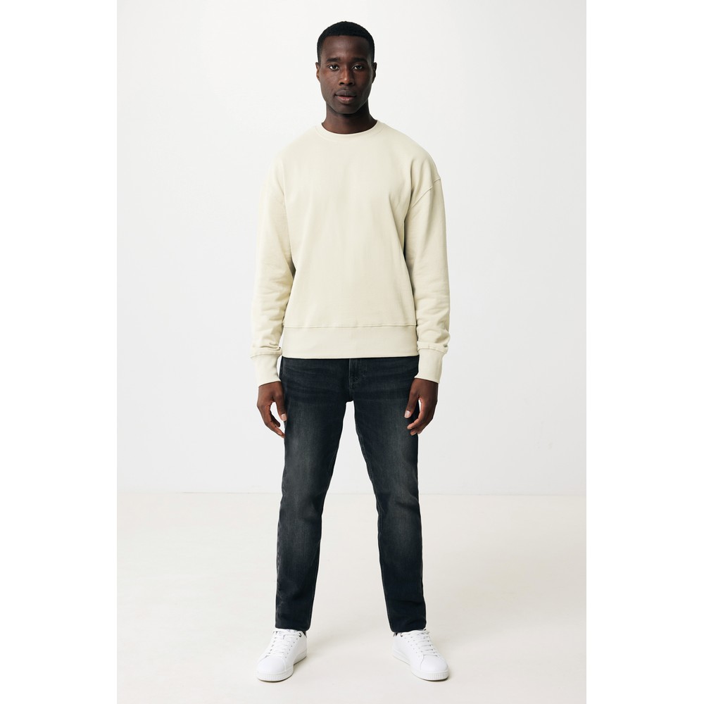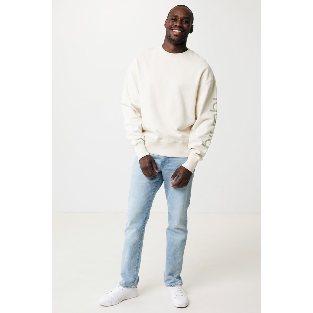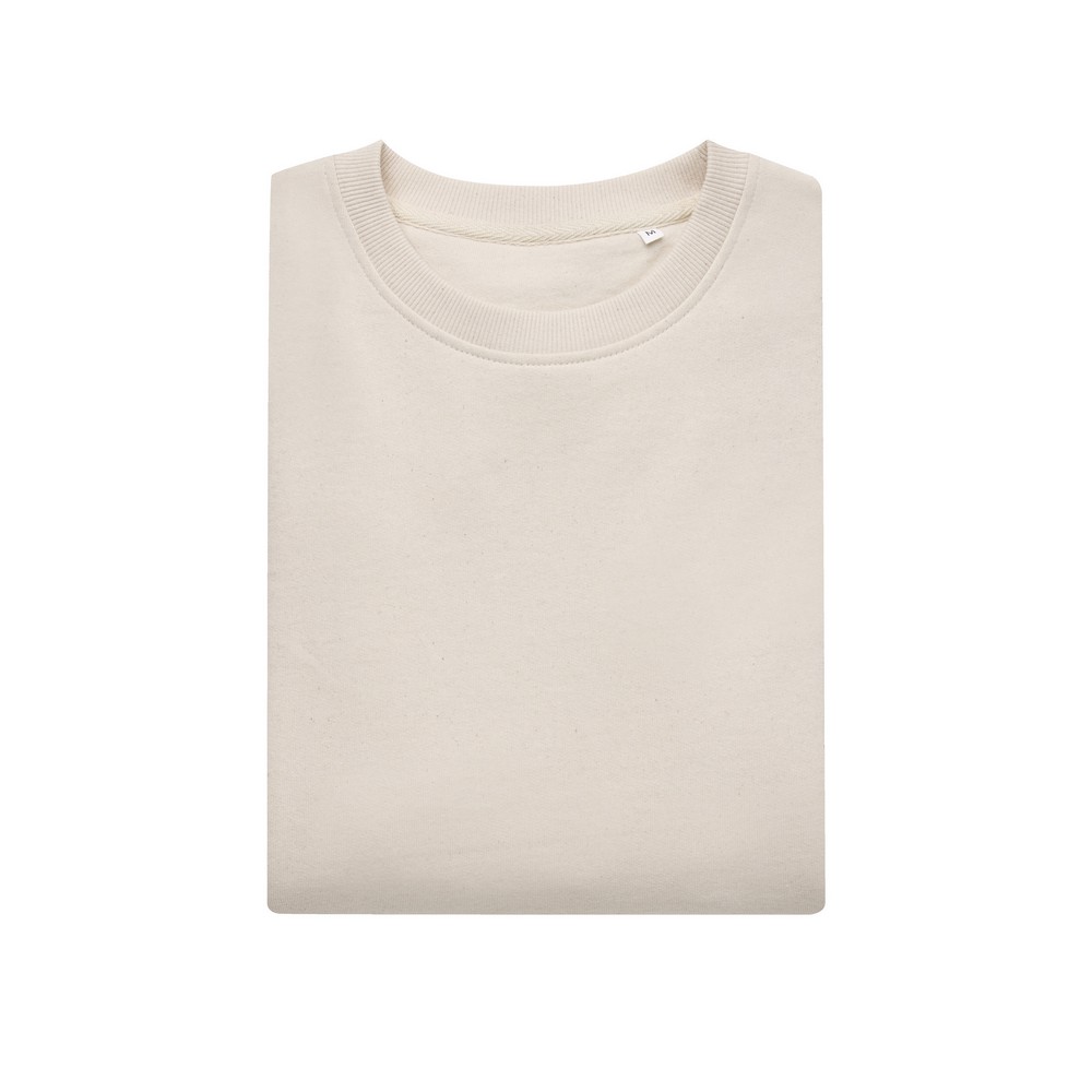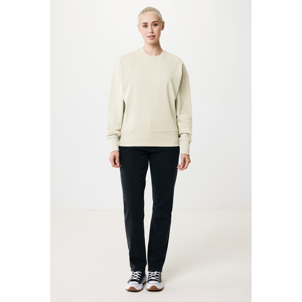 Bluza, unisex, długie rękawy, luźny krój, splot Brushed Sweat, okrągły dekolt, wykonana w 50% z bawełny z recyklingu i w 50% z bawełny organicznej 340 m/m2, bez dodatku poliestru, posiada wbudowany znacznik AWARE™, który potwierdza wykorzystanie materiałów z recyklingu, posiada kod QR na metce, który prowadzi do cyfrowego paszportu produktu, 2% wpływów z każdego sprzedanego produktu z kolekcji Impact jest przekazywane na rzecz Water.org, ślad węglowy produktu: 11,87 kg CO2