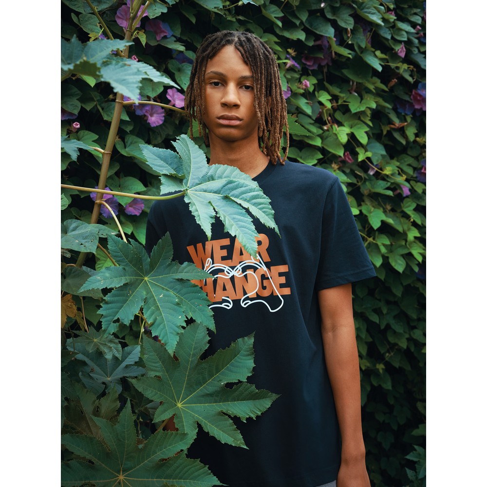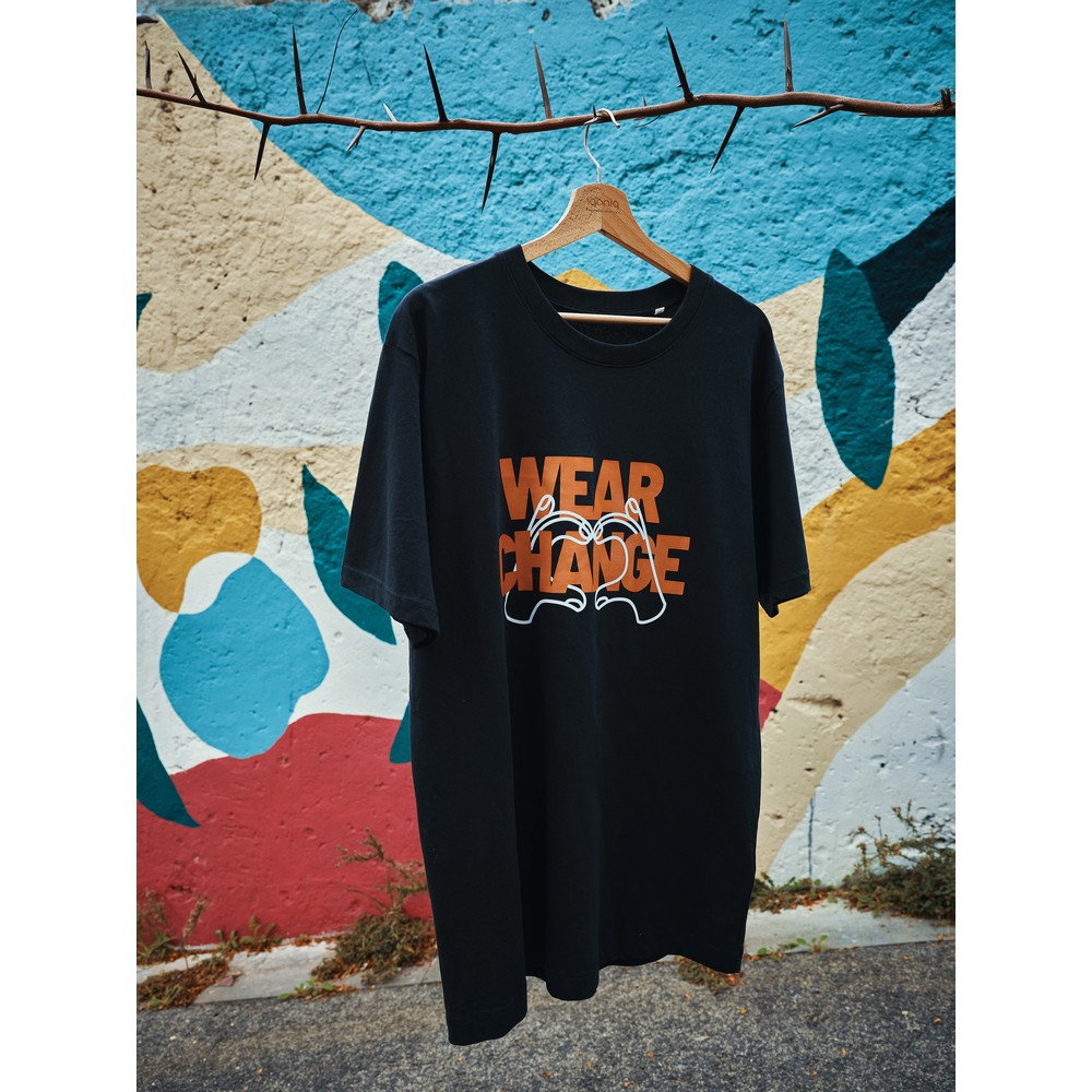 Koszulka, unisex, luźny krój, okrągły dekolt, krótkie rękawy, wykonana w 50% z bawełny z recyklingu i w 50% z bawełny organicznej o gramaturze 180 g/m2, posiada wbudowany znacznik AWARE™, który potwierdza wykorzystanie materiałów z recyklingu, posiada kod QR na metce, który prowadzi do cyfrowego paszportu produktu, 2% wpływów z każdego sprzedanego produktu z kolekcji Impact jest przekazywane na rzecz Water.org