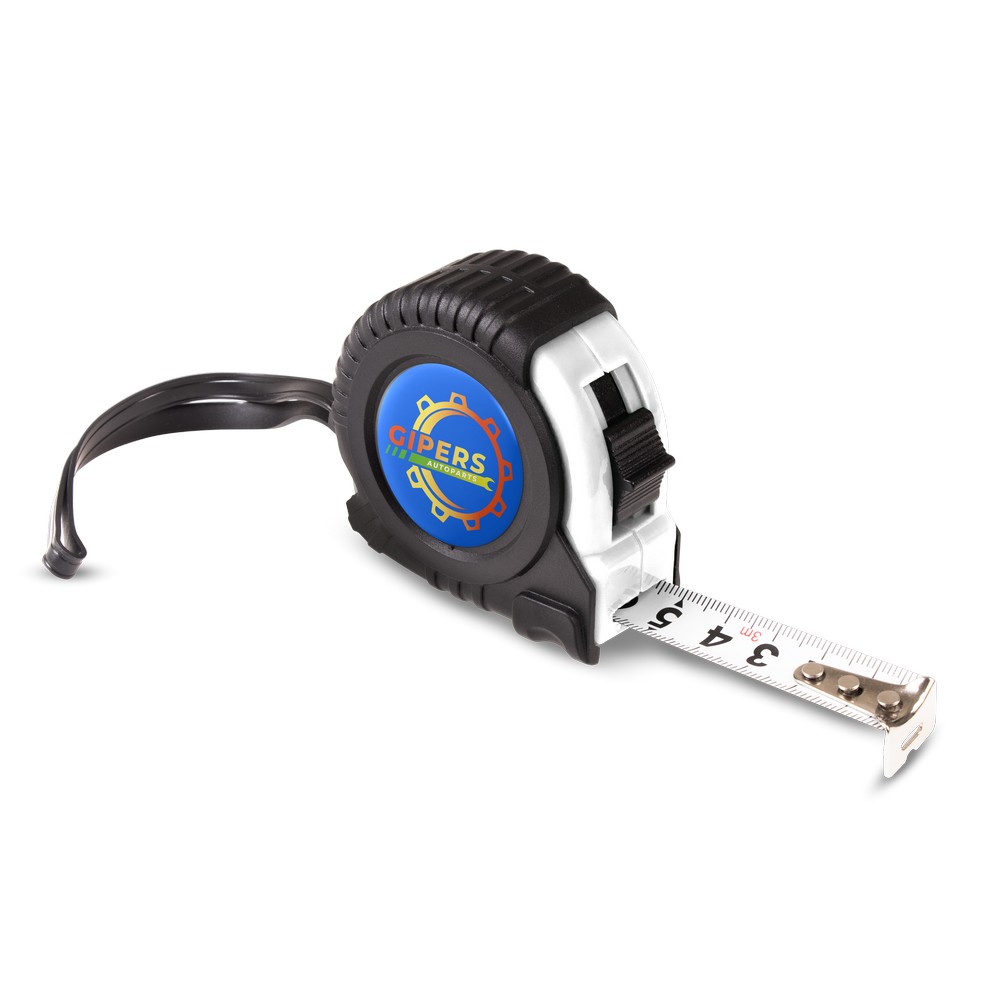 Miara 3 m z uchwytem ułatwiającym noszenie, klipem umożliwiającym przypięcie np. do paska, mechanizmem blokującym, korpusem pokrytym gumą, produkt wykonany z PP