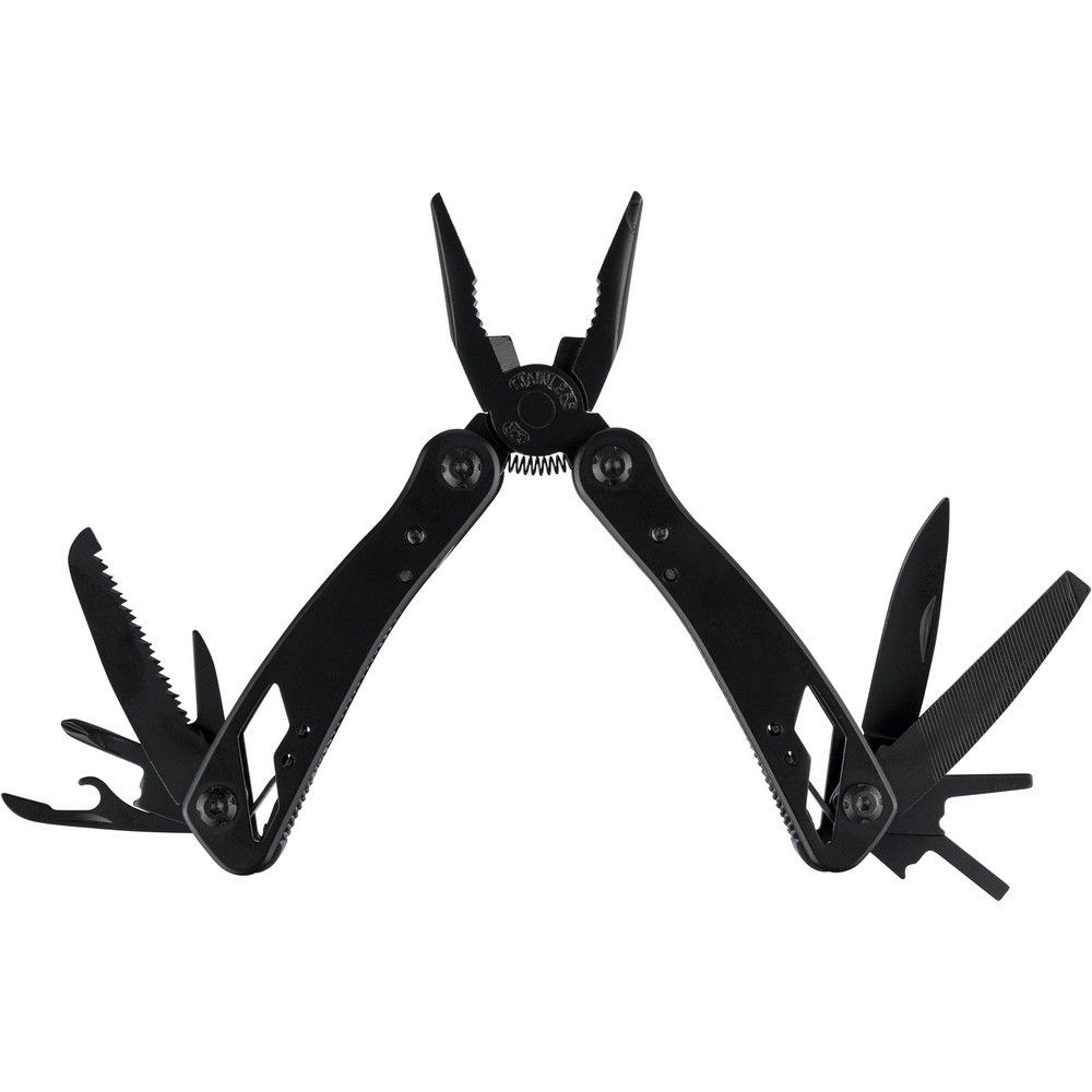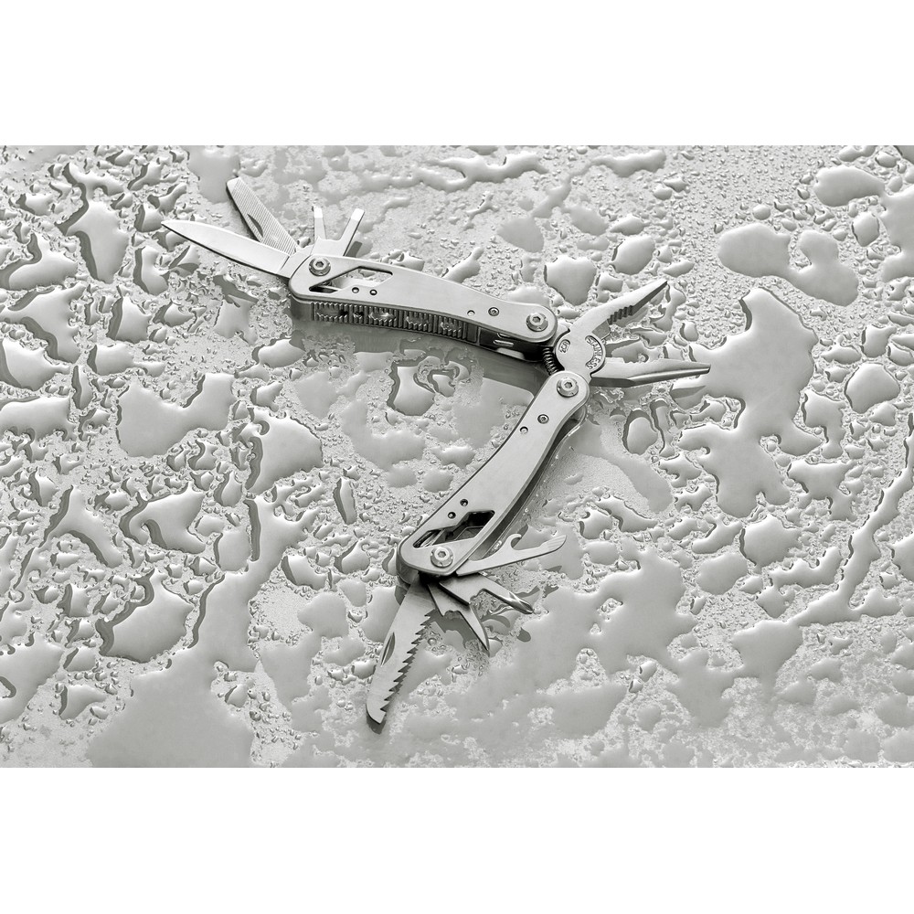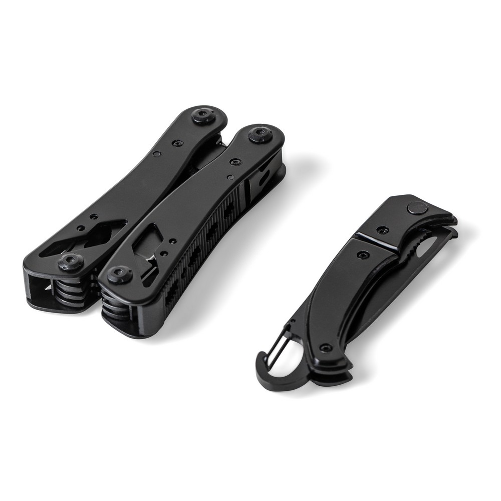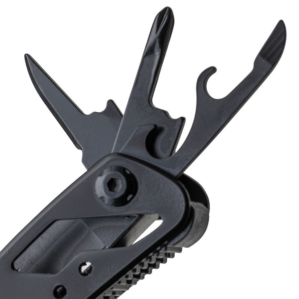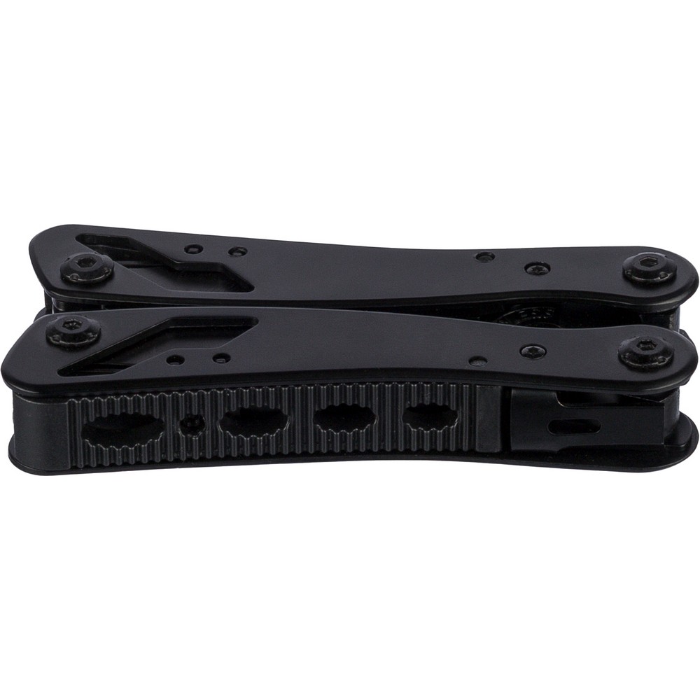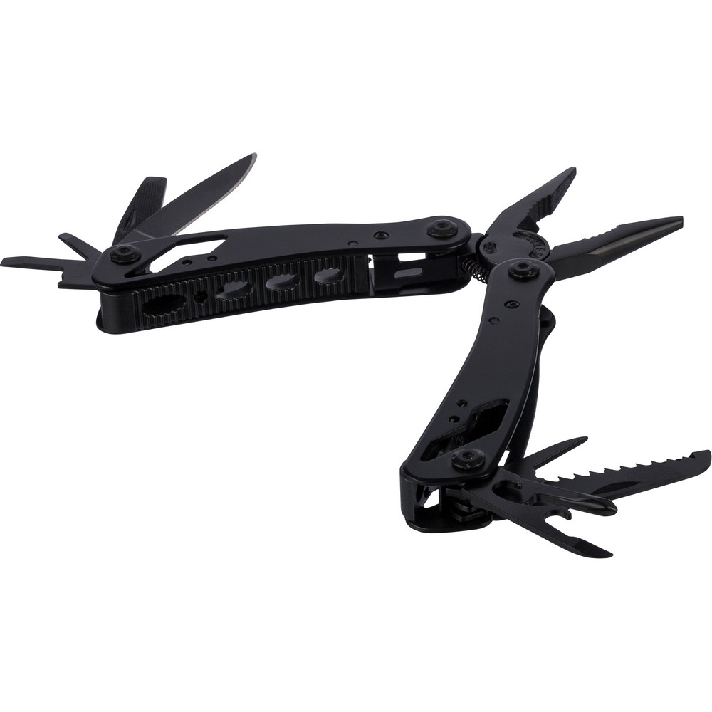 Narzędzie wielofunkcyjne z 13 funkcjami, kombinerki, przecinak do drutu, nóż, mały śrubokręt, średni śrubokręt płaski, duży śrubokręt płaski, uchwyt oczkowy, pilnik, piła, otwieracz, śrubokręt krzyżakowy, otwieracz do puszek, ściągacz izolacji, zapakowane w brązowe kartonowe pudełko, produkt wykonany z aluminium i stali nierdzewnej