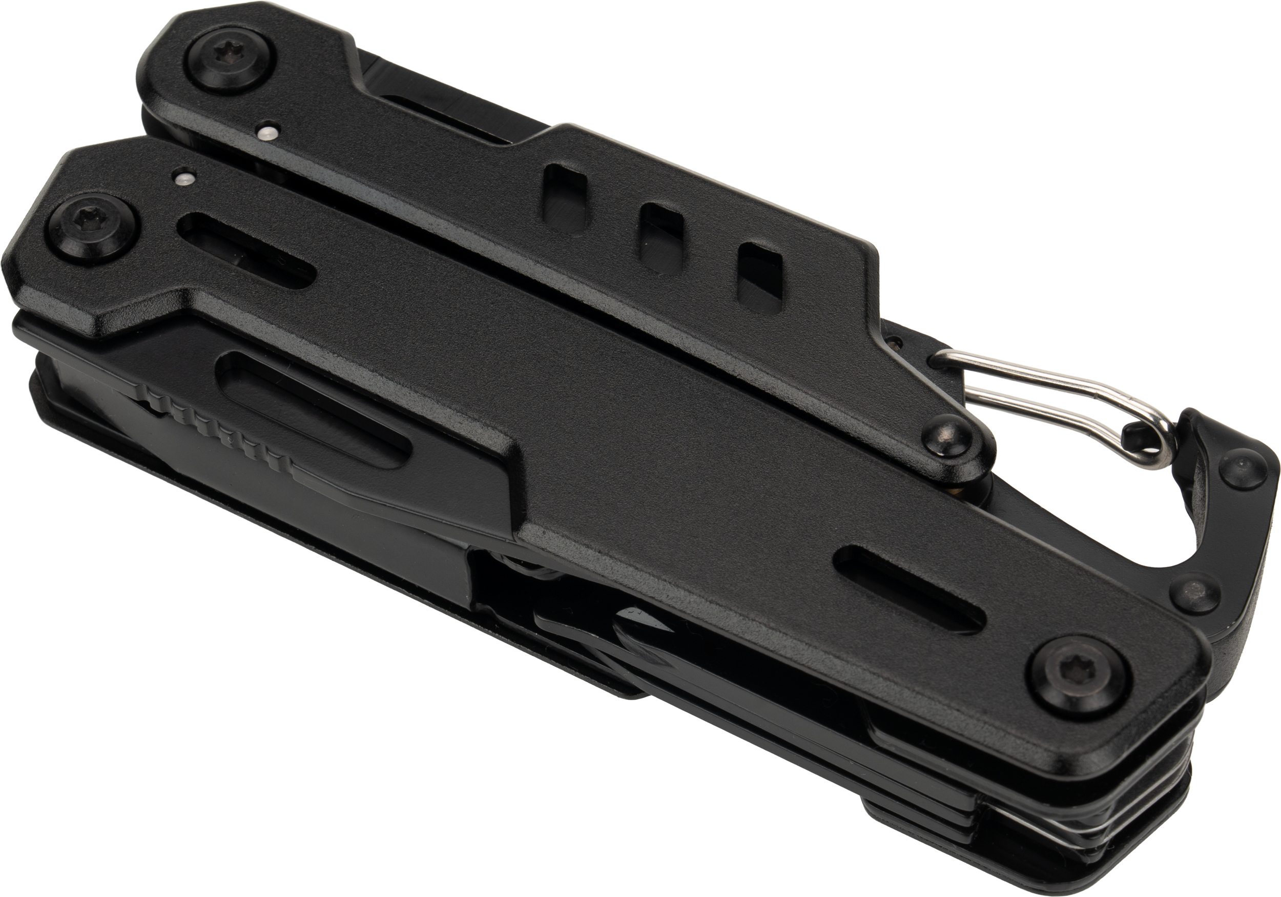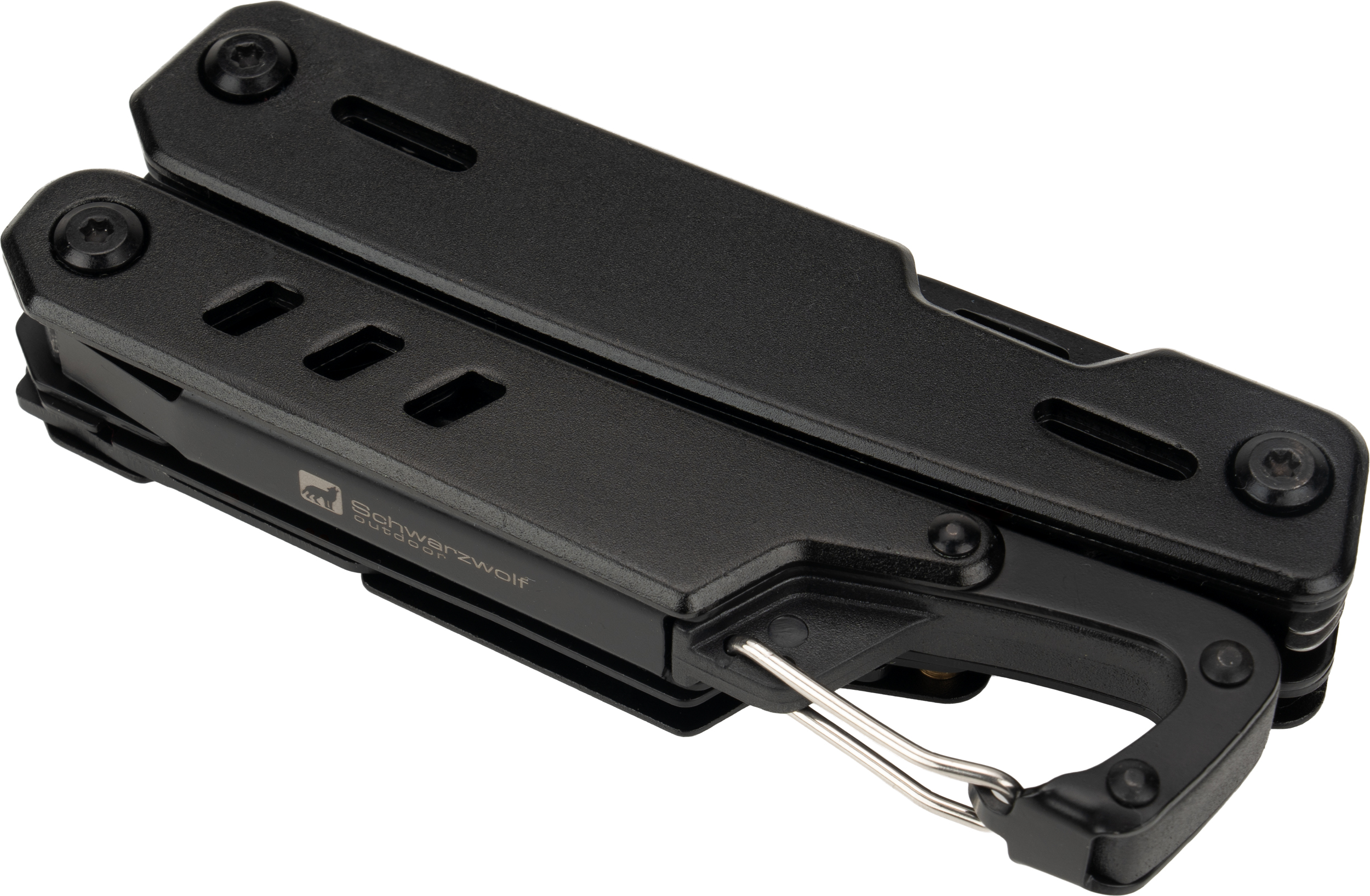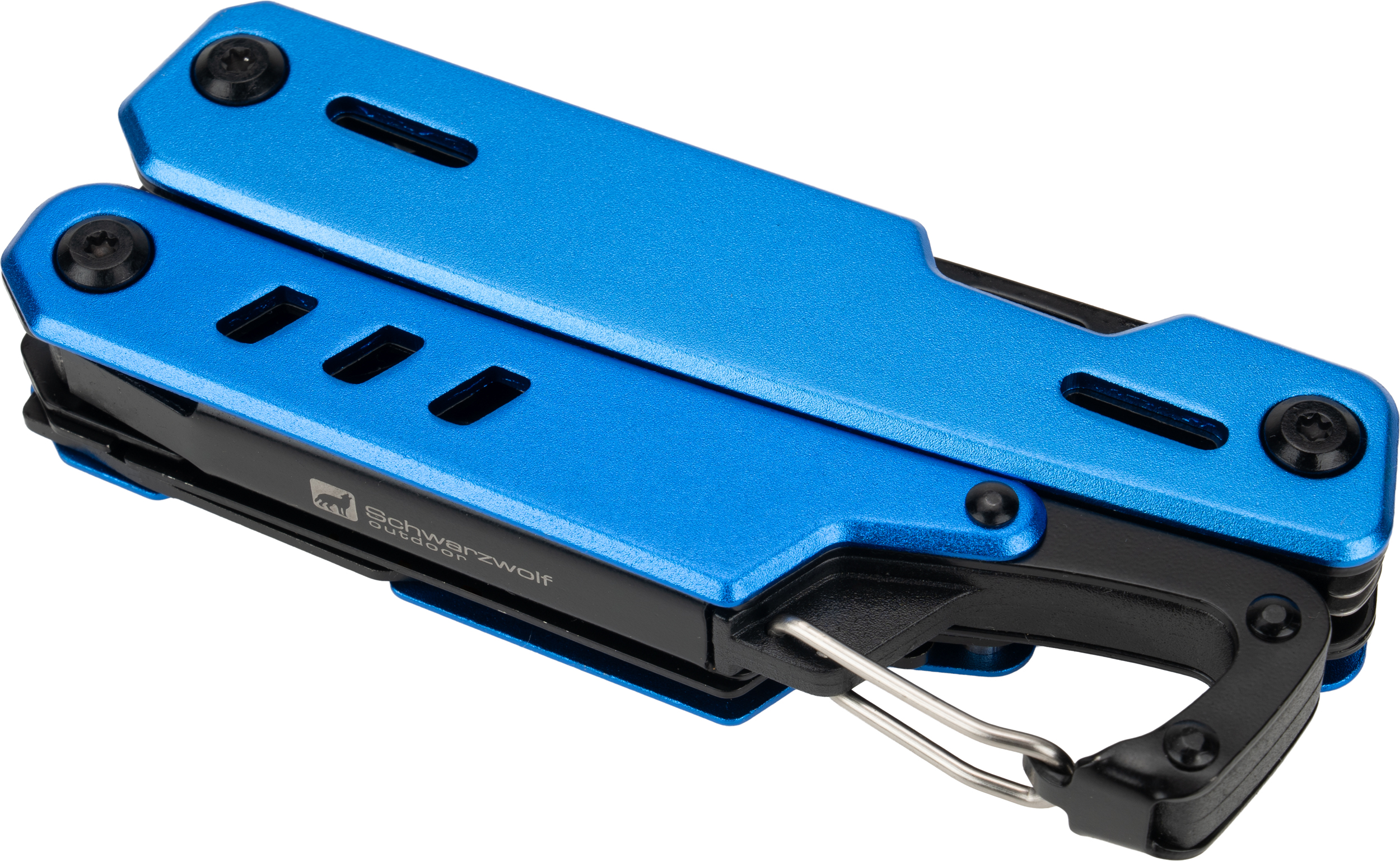 Multi-narzędzie Schwarzwolf zawiera 11 rodzajów narzędzi - nóż, otwieracz do piwa, otwieracz do puszek, szczypce, łuparka, piła, śrubokręt, śrubokręt krzyżakowy, pilnik, ściągacz izolacji. Zestaw narzędzi posiada karabińczyk i jest zapakowany w etui z neoprenu.