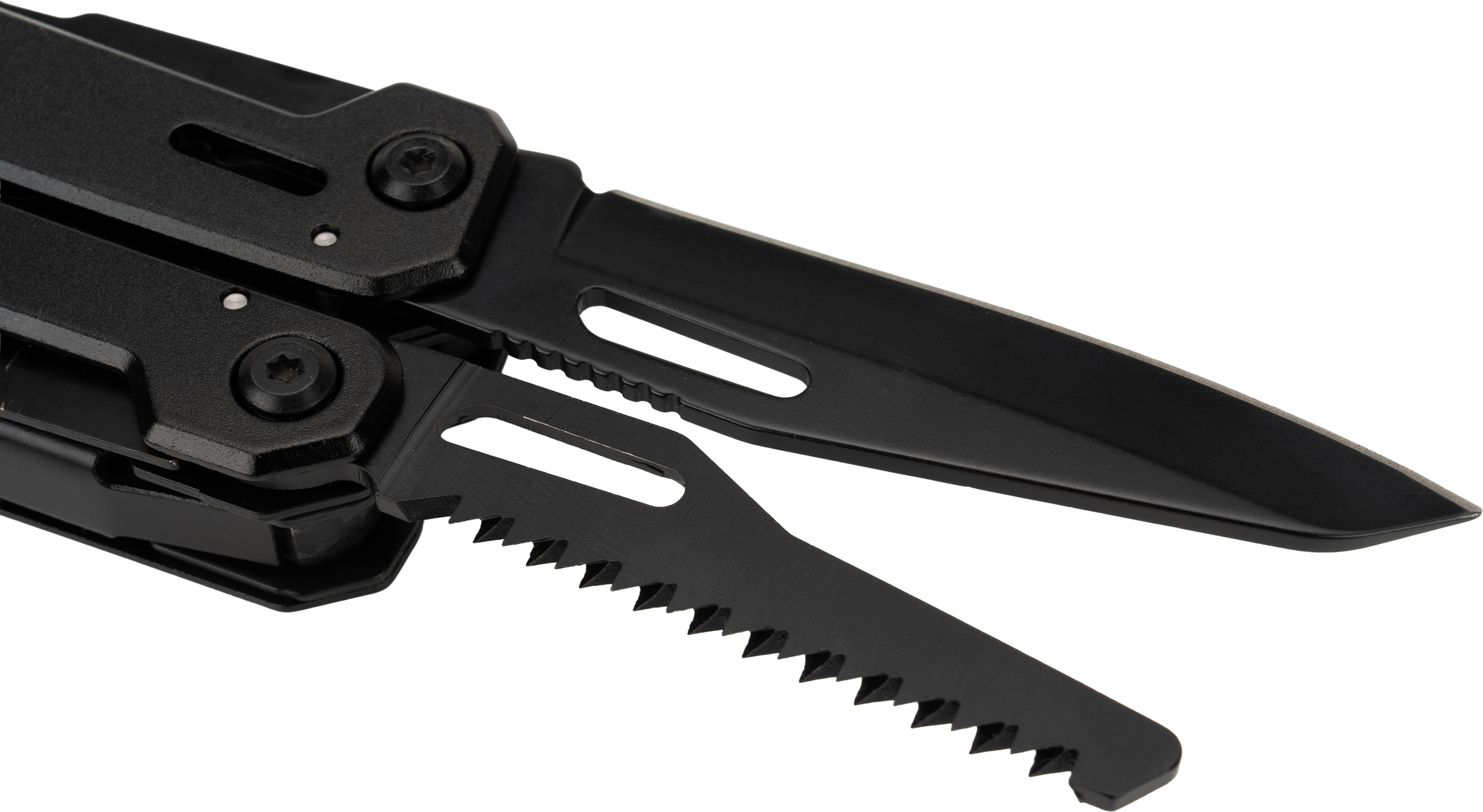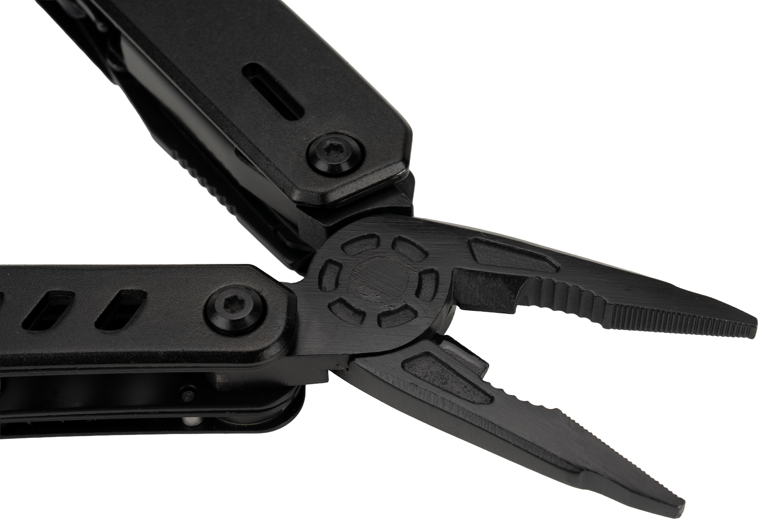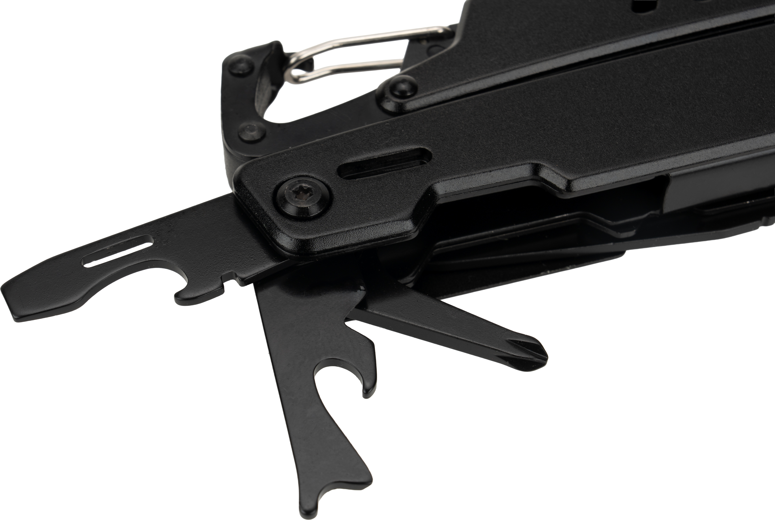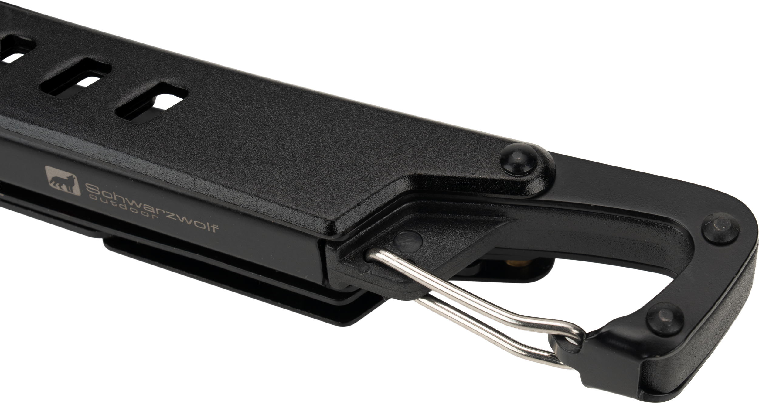 Multi-narzędzie Schwarzwolf zawiera 11 rodzajów narzędzi - nóż, otwieracz do piwa, otwieracz do puszek, szczypce, łuparka, piła, śrubokręt, śrubokręt krzyżakowy, pilnik, ściągacz izolacji. Zestaw narzędzi posiada karabińczyk i jest zapakowany w etui z neoprenu.