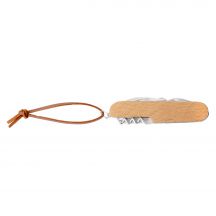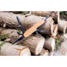 Narzędzie wielofunkcyjne, nóż wielofunkcyjny, scyzoryk, uchwyt z drewna bukowego, 7 funkcji: nóż, nożyczki, otwieracz do butelek, korkociąg, pilniczek, wkrętak krzyżakowy, otwieracz do puszek