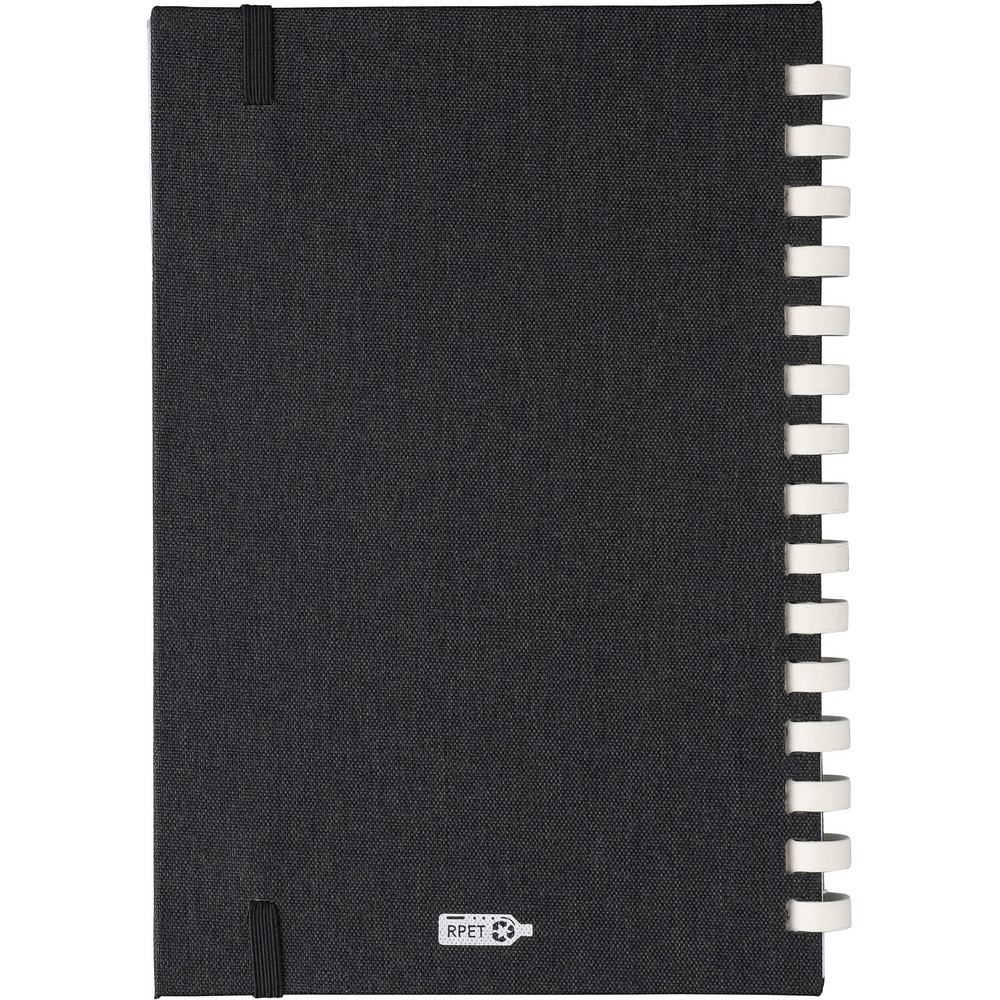 Notatnik ok. A5, 80 kartek w linie, (70 g/m²) z twardą okładką, zewnętrznym paskiem zamykającym, tasiemka zakładkowa umożliwia wygodne zaznaczanie ostatniej strony lub ważniejszych notatek, ikona RPET na produkcie