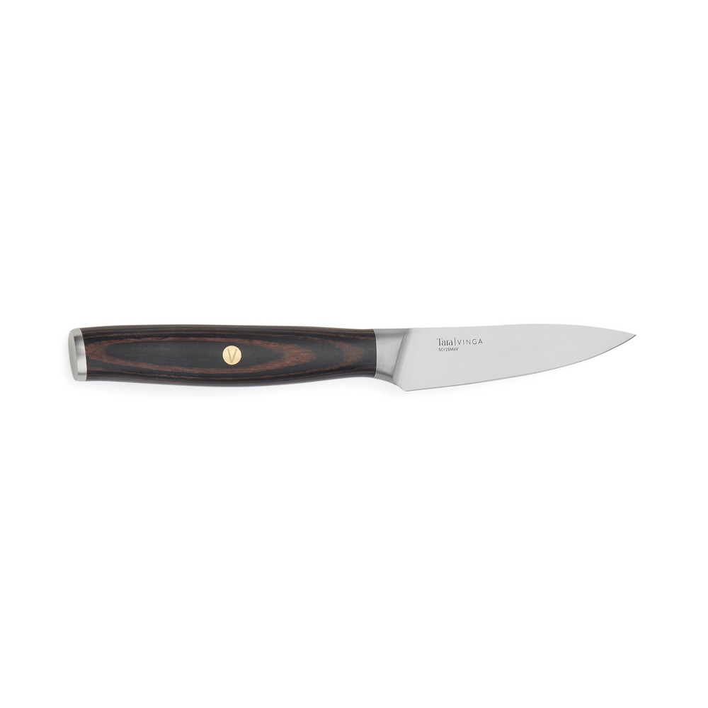 Nóż kuchenny, wykonany ze stali nierdzewnej pochodzącej z recyklingu z certyfikatem RCS, drewniana rękojeść, długość ostrza: 8,5 cm, całkowita zawartość materiałów z recyklingu obliczona w oparciu o wagę całkowitą przedmiotu: 12%, wyłącznie mycie ręczne