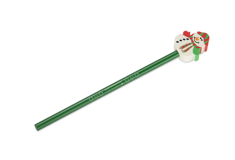 Ołówek CHRISTMAS to świąteczny gadżet, który łączy klasyczny zielony ołówek z gumką w kształcie uśmiechniętego bałwana. Kolorowy, zabawny detal na końcówce sprawia, że to idealny dodatek do paczek mikołajkowych, kalendarzy adwentowych lub jako drobny upominek dla dzieci. Sprawdzi się jako sezonowy nośnik reklamy w kampaniach o lekkim, świątecznym charakterze.