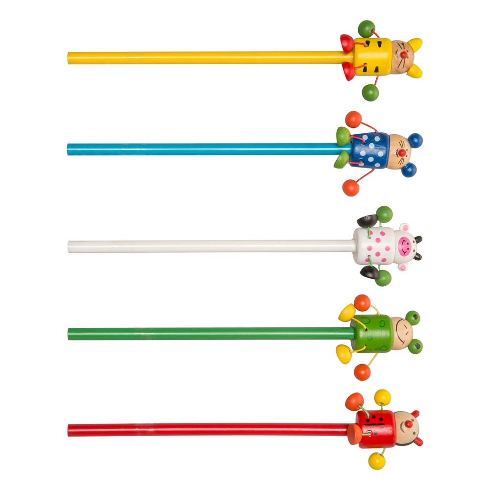 Ołówek "zwierzątko" z kolorowym trzonem, końcówka nie jest naostrzona, występuje w 5 różnych wzorach sprzedawanych losowo: tygrys, biedronka, mysz, żaba i krowa, produkt wykonany z drewna i nylonu