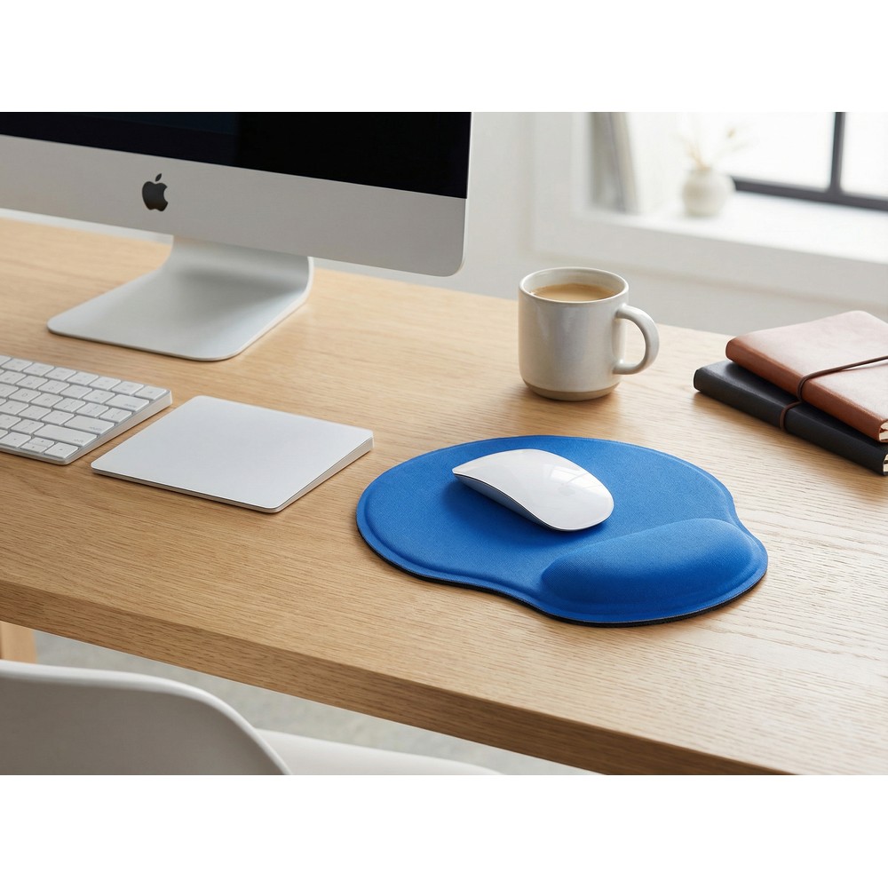 Podkładka pod mysz z podpórką pod nadgarstek, posiada antypoślizgowy, silikonowy spód, produkt wykonany z poliestru