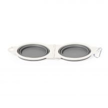 Podwójna miska dla psa z elementami z włókien słomy pszenicznej, składana, karabińczyk w komplecie