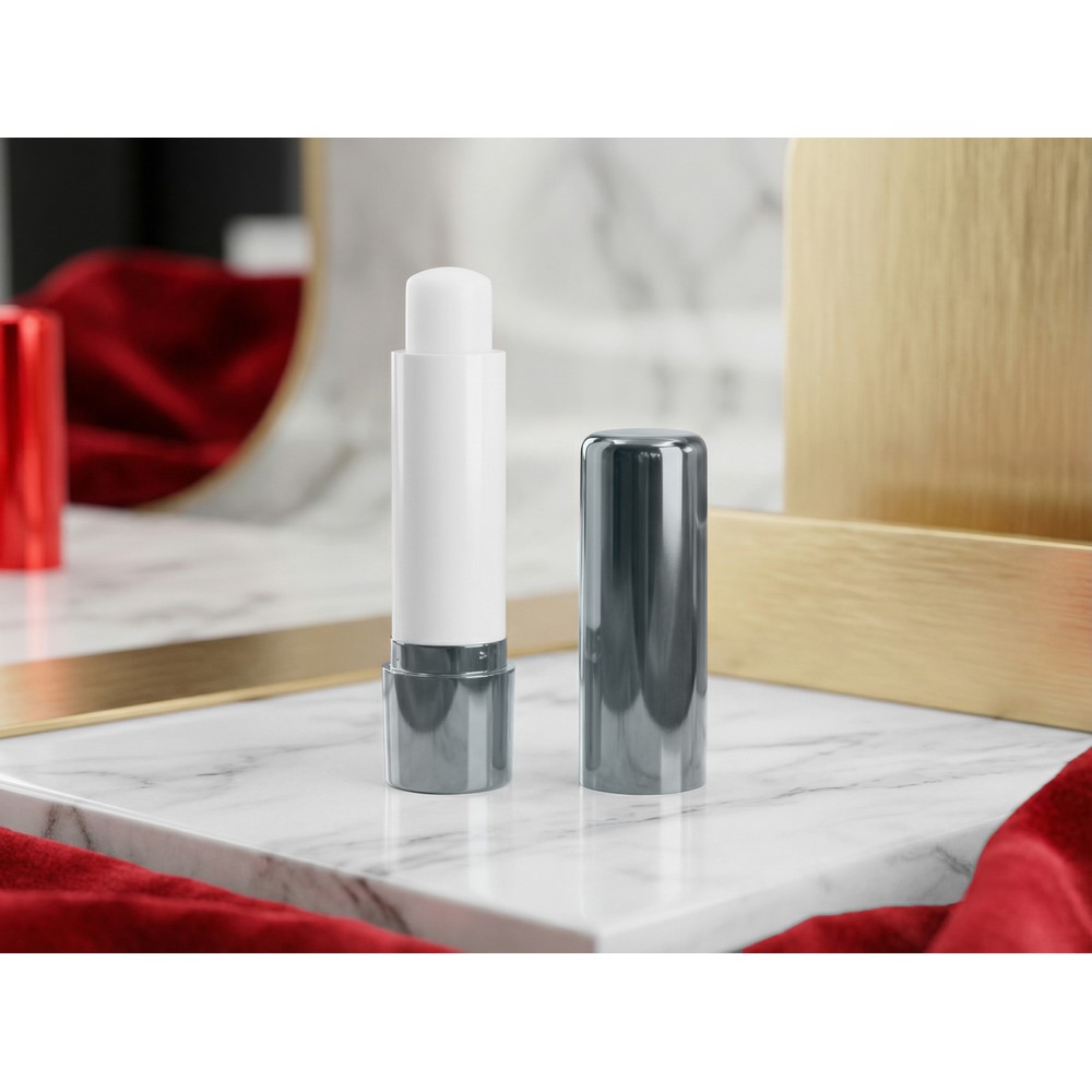 Pomadka ochronna z filtrem przeciwsłonecznym SPF15 zatrzymującym 93% promieni UVB, waniliowy zapach, metaliczne wykończenie, produkt wykonany z ABS