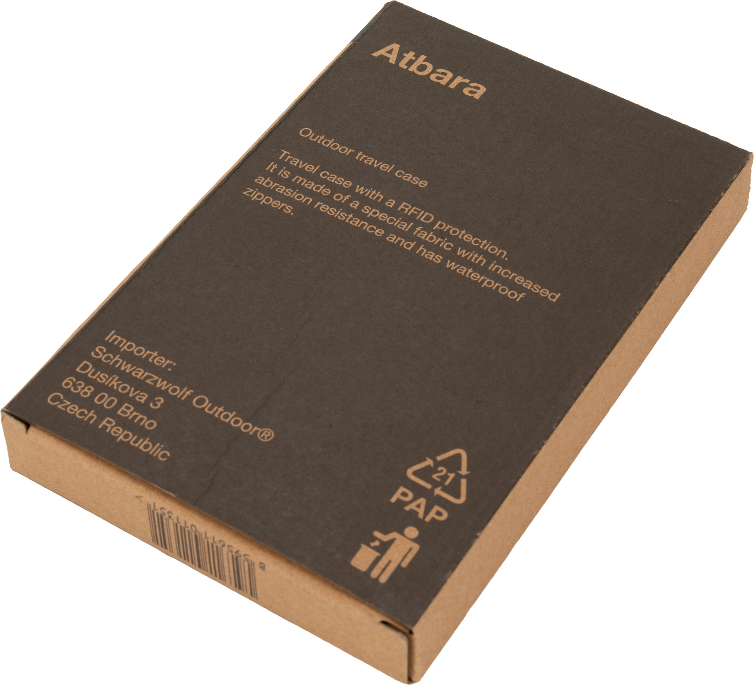 Mały portfel podróżny z ochroną RFID, posiada główną kieszeń oraz mniejszą, frontową, obie zapinane na zamek. Portfel wykonany z materiału odpornego na ścieranie.