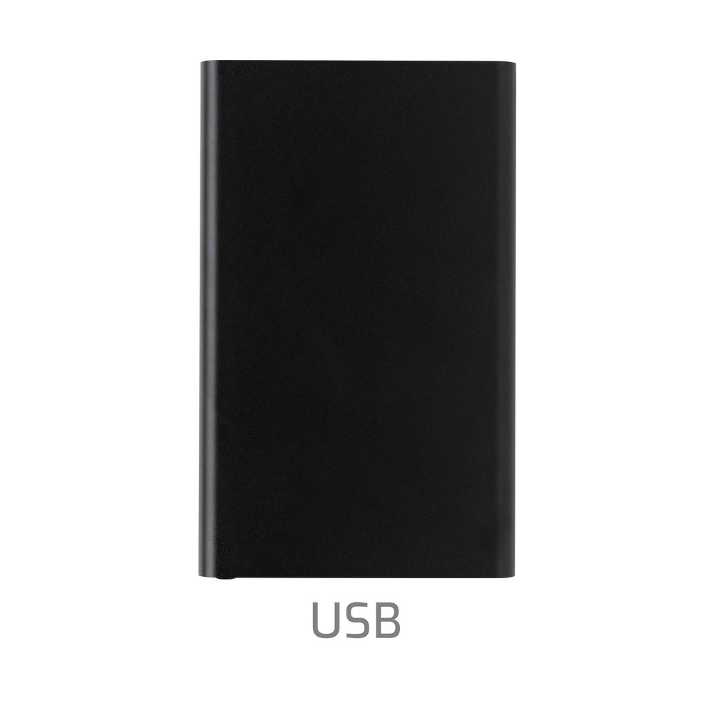Power bank 4000 mAh, wskaźniki poziomu naładowania, wbudowany akumulator litowo-polimerowy klasy A, wykonany z aluminium i ABS z recyklingu, całkowita zawartość materiałów obliczona na podstawie wagi całkowitej przedmiotu: 66%, wejście USB typu C 5V/2A, wyjście USB typu C 5V/2A, wyjście USB 5V/2A, kabel z TPE z recyklingu z certyfikatem RCS w komplecie, w pudełku z papieru z certyfikatem FSC® mix, ślad węglowy produktu: 1,83 kg CO2