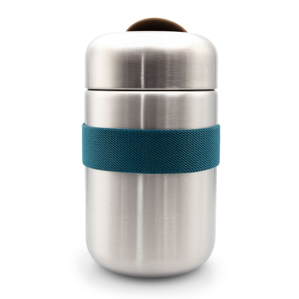 Próżniowy pojemnik na żywność 400 ml z łyżką, podwójne ścianki, wnętrze ze stali nierdzewnej, szczelny, utrzymuje temperaturę napojów ciepłych do 6 h oraz zimnych do 8 h, wyłącznie mycie ręczne, łyżka nadaje się do mycia w zmywarce