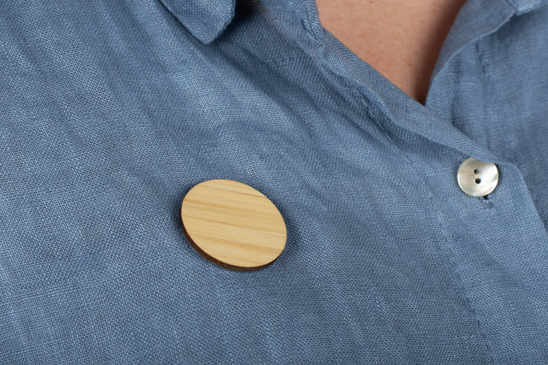 Przypinka bambusowa ROUND to prosty i stylowy gadżet reklamowy w klasycznym, okrągłym kształcie. Mocowanie na magnes umożliwia przypięcie jej do ubrania bez ryzyka uszkodzenia materiału. Dzięki możliwości znakowania logo przypinka staje się praktycznym nośnikiem reklamy podczas eventów i akcji promocyjnych.