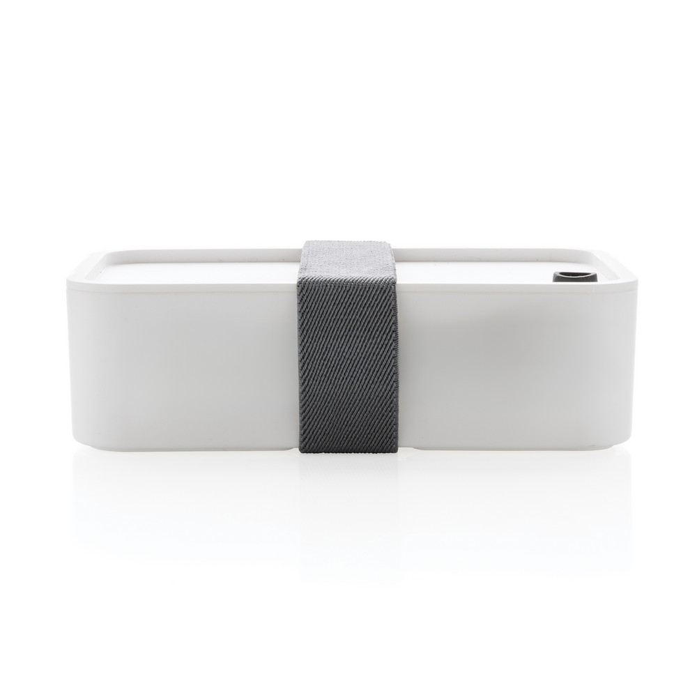 Pudełko śniadaniowe 1,2 L, lunchbox, wykonany w 93% z PP pochodzącego z recyklingu z certyfikatem GRS (Global Recycled Standard) który gwarantuje, że wykorzystane materiały pochodzą z recyklingu, w komplecie łyżkowidelec i elastyczny pasek, nie należy myć w zmywarce i używać w kuchence mikrofalowej
