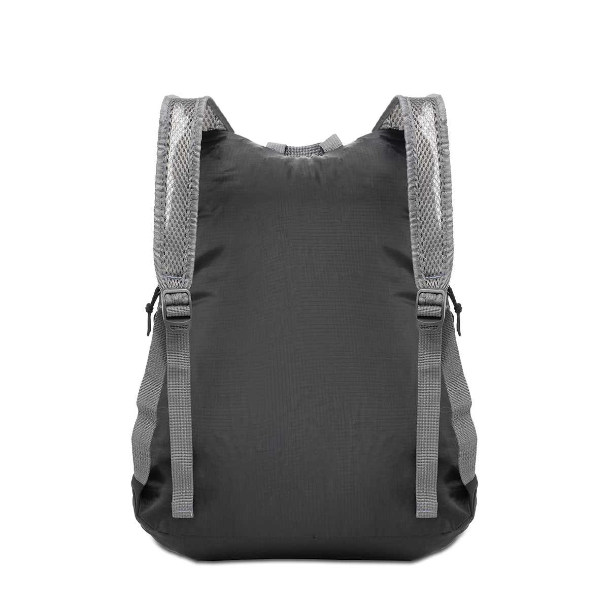 Lekki plecak z przednim panelem odbijającym światło i boczną kieszenią. Kompaktowy, można go spakować w małe etui (9x13 cm).