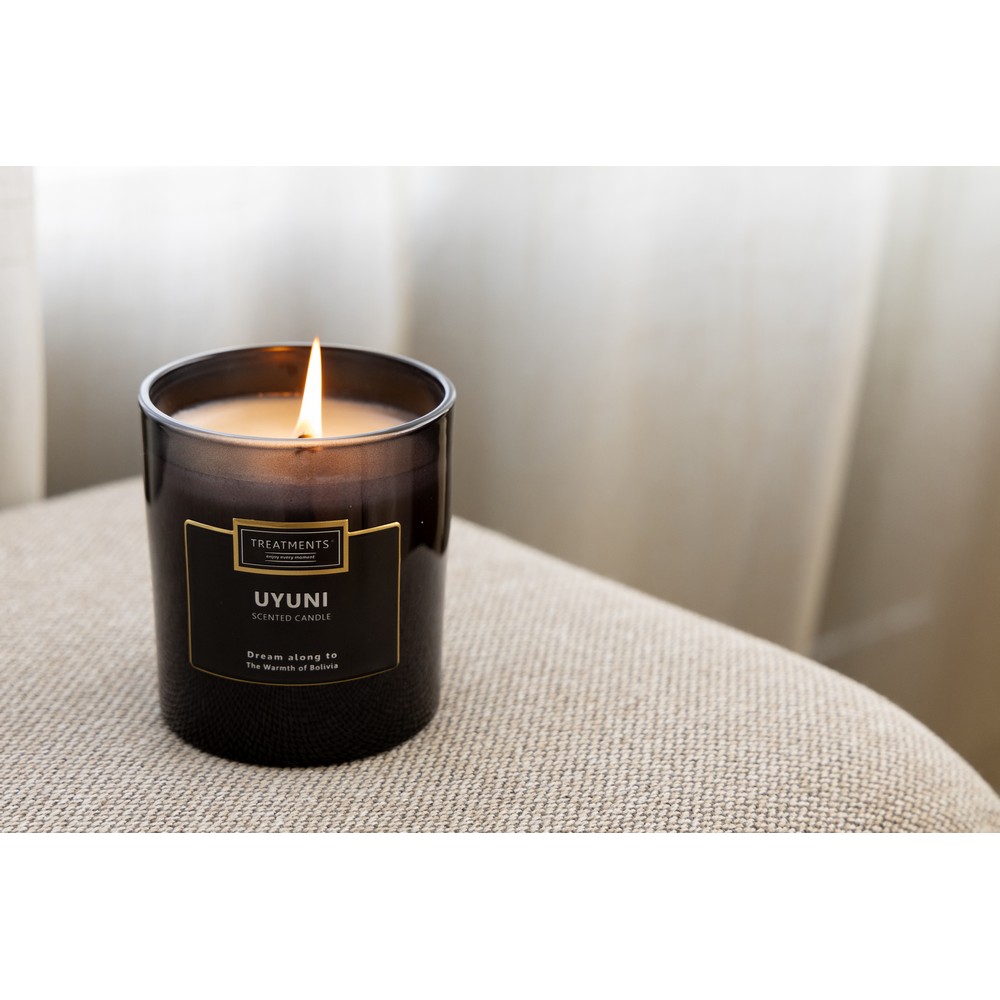 Świeczka zapachowa TREATMENTS, 380 g, zapakowana w elegancki kartonik, świeczka wypełni wnętrze domu ciepłem i niepowtarzalnym zapachem, dostępne różne warianty zapachowe: 03 - Ceylon, 06 - Mahayana, 08 - Omani, 11 - Uyuni, 16 - Zhejinag, 19 - Shinshiro, 21 - Verona, 98 - Samoa. Znakowanie produktu jest możliwe tylko na srebrnej lub złotej folii z czarnym nadrukiem albo na czarnej apli ze srebrnym lub złotym nadrukiem.