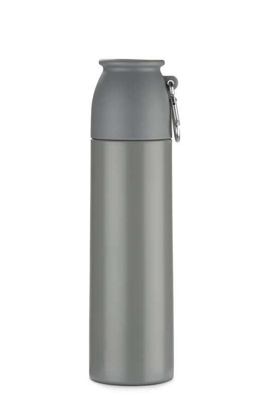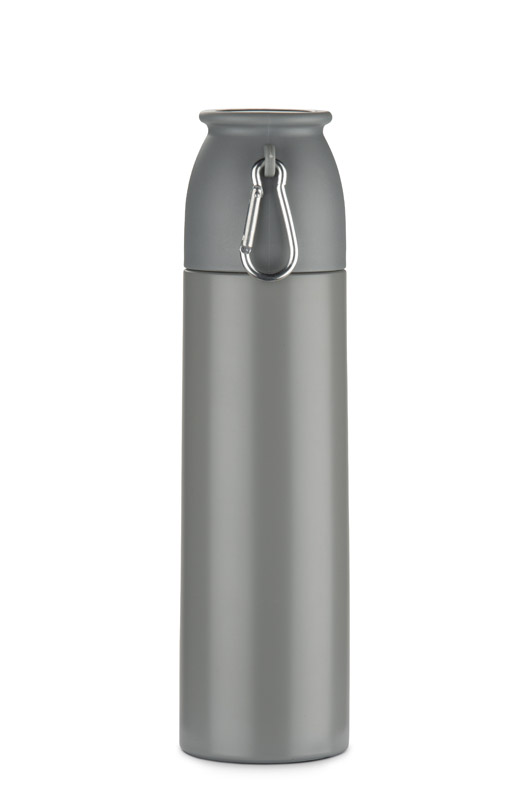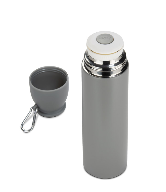 Termos FAZARI 500 ml wykonany jest ze stali nierdzewnej, dzięki czemu skutecznie utrzymuje temperaturę napojów do 8 godzin. Wyposażony w wygodny mechanizm otwierania typu „naciśnij”, który ułatwia korzystanie z termosu w podróży czy w samochodzie. Klasyczna, gwintowana zakrętka pełni funkcję kubeczka, a dołączony karabińczyk umożliwia przypięcie termosu do torby lub plecaka. Smukła konstrukcja typu slim sprawia, że z łatwością mieści się w uchwytach samochodowych i bocznych kieszeniach plecaków.