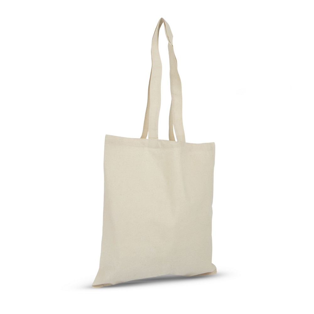 Bawełniana torba na zakupy, posiada długie uchwyty umożliwiające noszenie na ramieniu, produkt wykonany z bawełny o gramaturze 180 g/m², zgodna z certyfikatem OEKO-TEX Standard 100