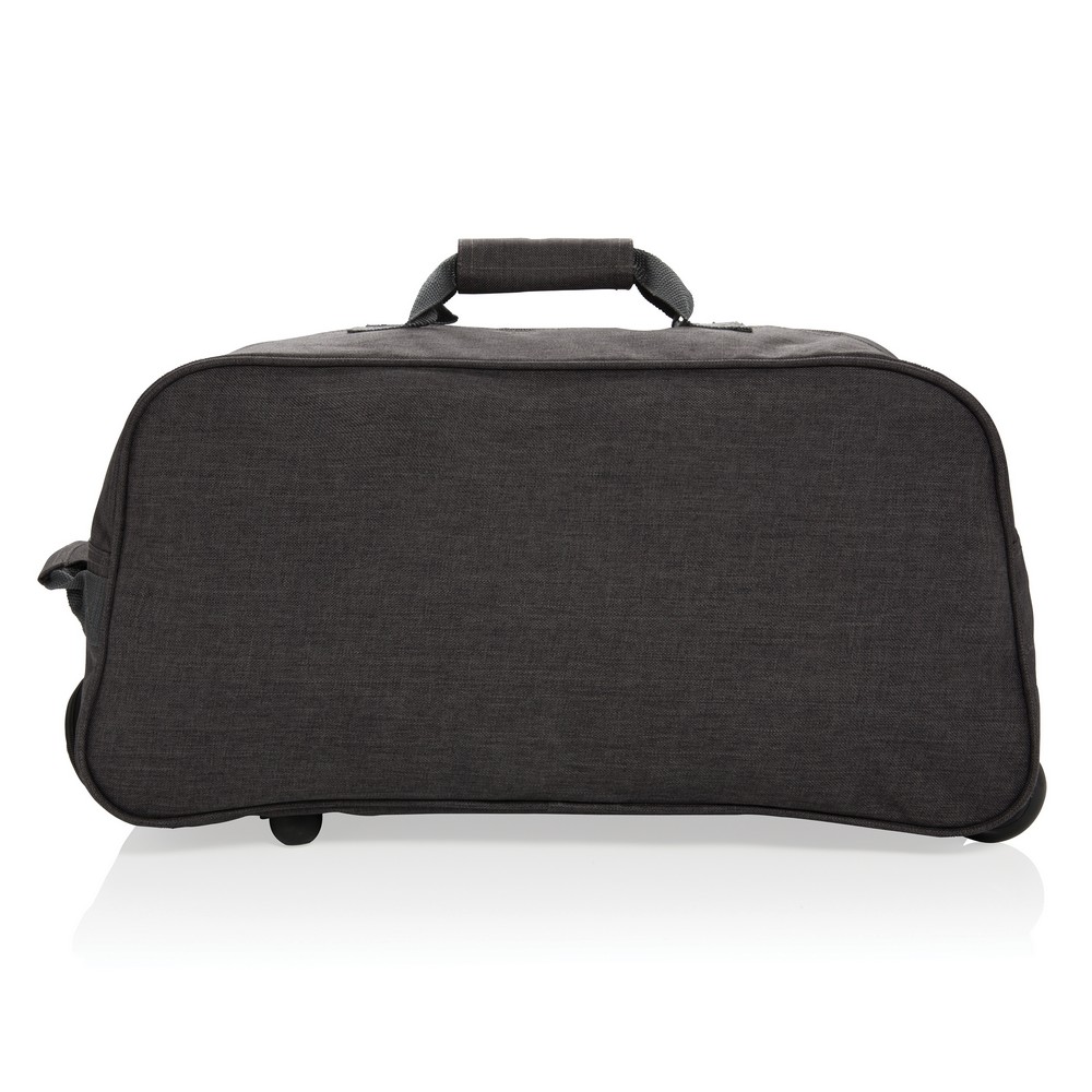 Torba sportowa, podróżna na kółkach, wykonana z dwukolorowego poliestru 600D o dużej gęstości, posiada przednią kieszeń, przegroda główna na zamek błyskawiczny, ślad węglowy produktu: 7,83 kg CO2