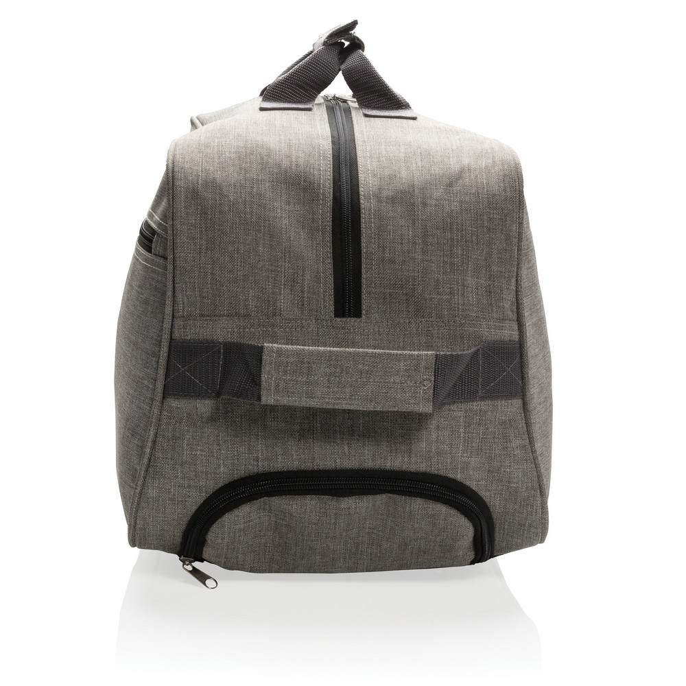 Torba sportowa, podróżna na kółkach, wykonana z dwukolorowego poliestru 600D o dużej gęstości, posiada przednią kieszeń, przegroda główna na zamek błyskawiczny, ślad węglowy produktu: 7,83 kg CO2