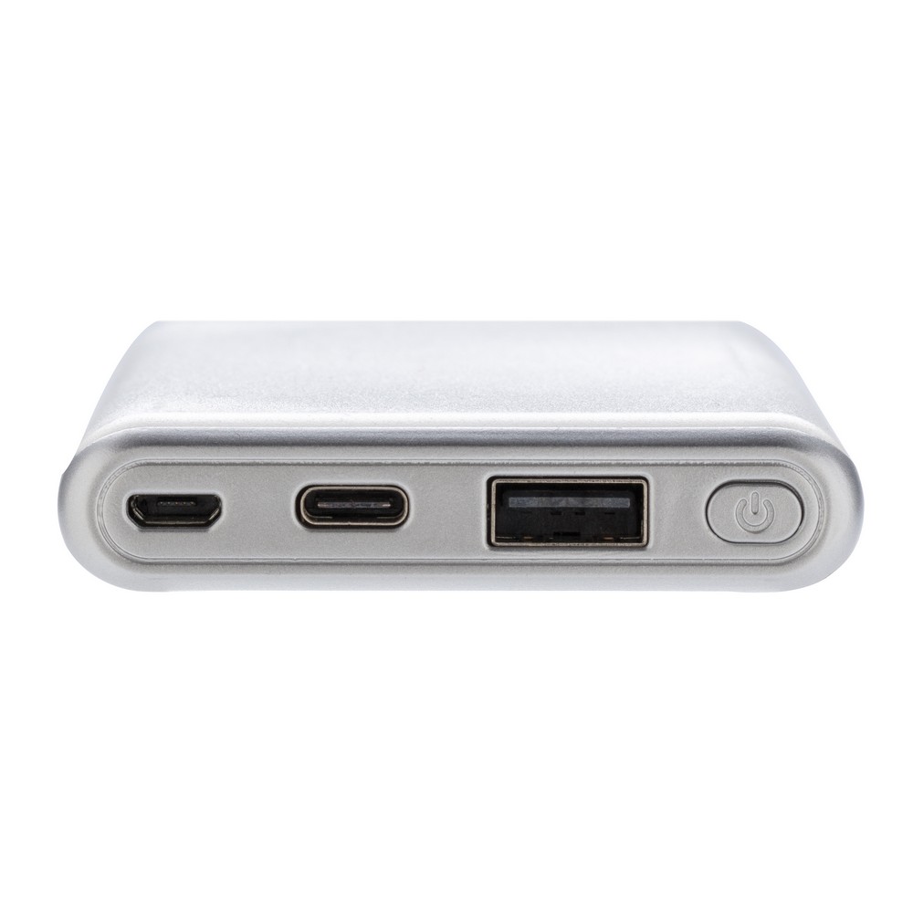 Power bank 10000 mAh z PD, funkcja szybkiego ładowania, 2 wyjścia do ładowania w tym USB i USB typu C do ładowania urządzeń iOS oraz MacBook (max. 18W), wykonany z ABS, wejście micro USB 5V/2A, wyjście USB 5V/3A, 9V/2A, 12V/1.5A, wejście USB typu C 5V/2A, 9V/2A, wyjście USB typu C 5V/3A, 9V/2A, 12V/1.5A, kabel micro USB w komplecie, ślad węglowy produktu: 3,73 kg CO2