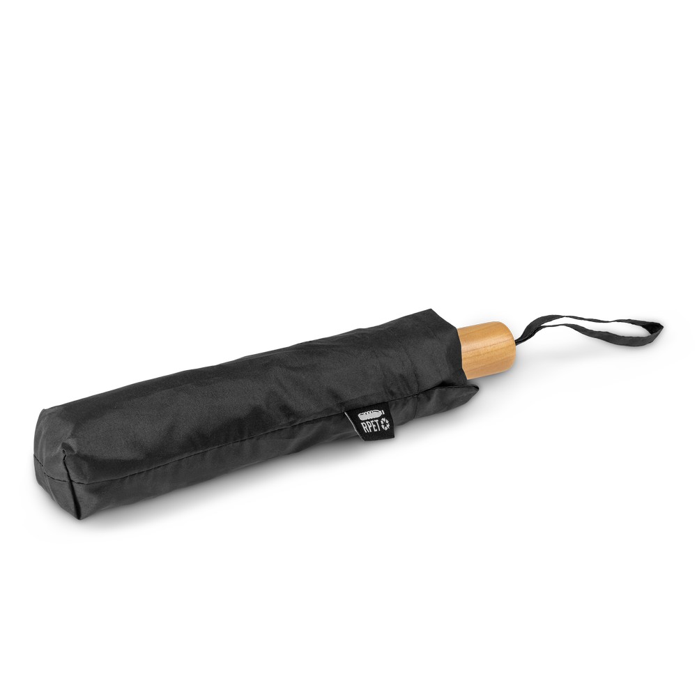 Wiatroodporny parasol RPET, manualny, składany, 8 paneli, drewniana rączka, metalowa rama, zapięcie na rzep, pokrowiec w komplecie