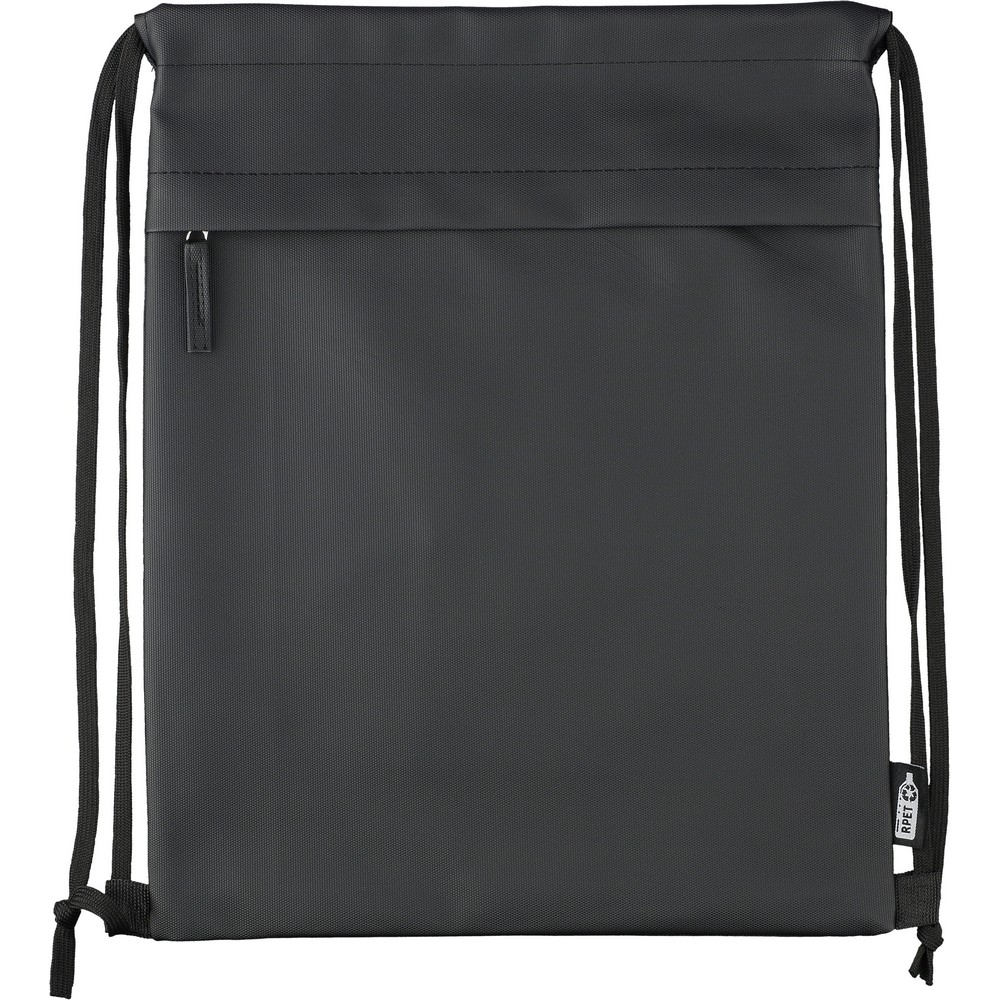 Worek ze sznurkiem, zapinana kieszeń z przodu, wewnętrzne kieszenie w komorze głównej, pojemność: 8 l, udźwig: 8 kg, wodoodporna powłoka z PU, ikona RPET na metce, produkt wykonany z RPET